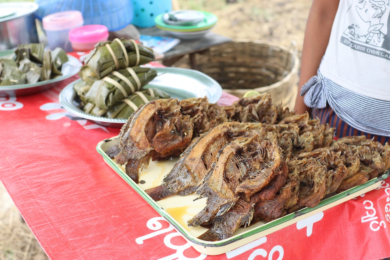 너른 들판 앞에서 말린 생선을 팔고 있는 소녀를 만났다. 미얀마의 천연 선크림이라는 다나까를 발랐지만 예쁜 얼굴임을 가릴 수가 없다.