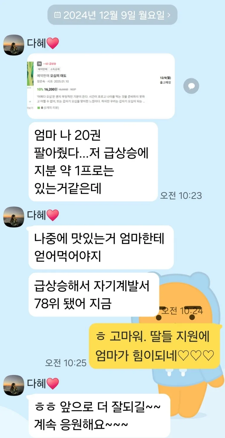 주변 홍보를 부탁했는데 홍보해 주시는 분들도 계시고 책이 출간되었다는 소식에 아는 친구나 동료들에게 책 선물해 주겠다며 여러 권을 구매해 주신 지인들에게는 뭐라 감사의 말씀을 드려야 하는지 모르겠습니다.