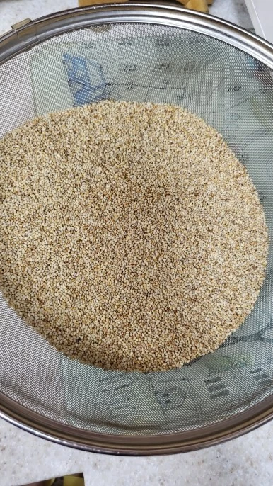 아버님이 주신 참깨를 물에 깨끗이 씻고 잔 이물질들도 걸러내고 흙과 돌을 채로 걸러내 몇 번을 씻는다. 10년째 아버님이 주신 생 깨를 씻고 볶으면서 오늘 주신 깨가 흙과 돌이 가장 많다는 것을 아니 마음이 안 좋다. 예전 같았으면 그냥 아무렇지 않았을 이 상황이 오늘은 문뜩 마음이 간다. 농사라는 것이 농부의 정성과 땀으로 거둬들인 결과물이다. 작게나마 텃밭을 가꾸면서 어떤 마음으로 먹거리를 키우는지 알기에 그 마음이 보인다. 평소 3~4번 씻으면 깨끗해질 생 깨가 오늘은 8번을 씻었다. 즉 이 얘기는 아버님이 농사를 지으시는 게 예전 같지 않고 버거워 수확하는데 작업이 줄었거나 그날 컨디션이 안 좋아 수확하는데 어려움이 있으셨을 게 느껴진다. 한 톨 한 톨 소중하게 씻고 채에 걸러 물기를 빼고 천천히 볶는 과정을 하면서 예전에는 미처 몰랐던 아버님의 수고와 노고가 보인다. 이 번거롭고 손 많이 가는 깨를 한 번도 싫은 소리 없이 볶아서 주신 돌아가신 어머님의 정성과 자식 향한 마음이 느껴진다.