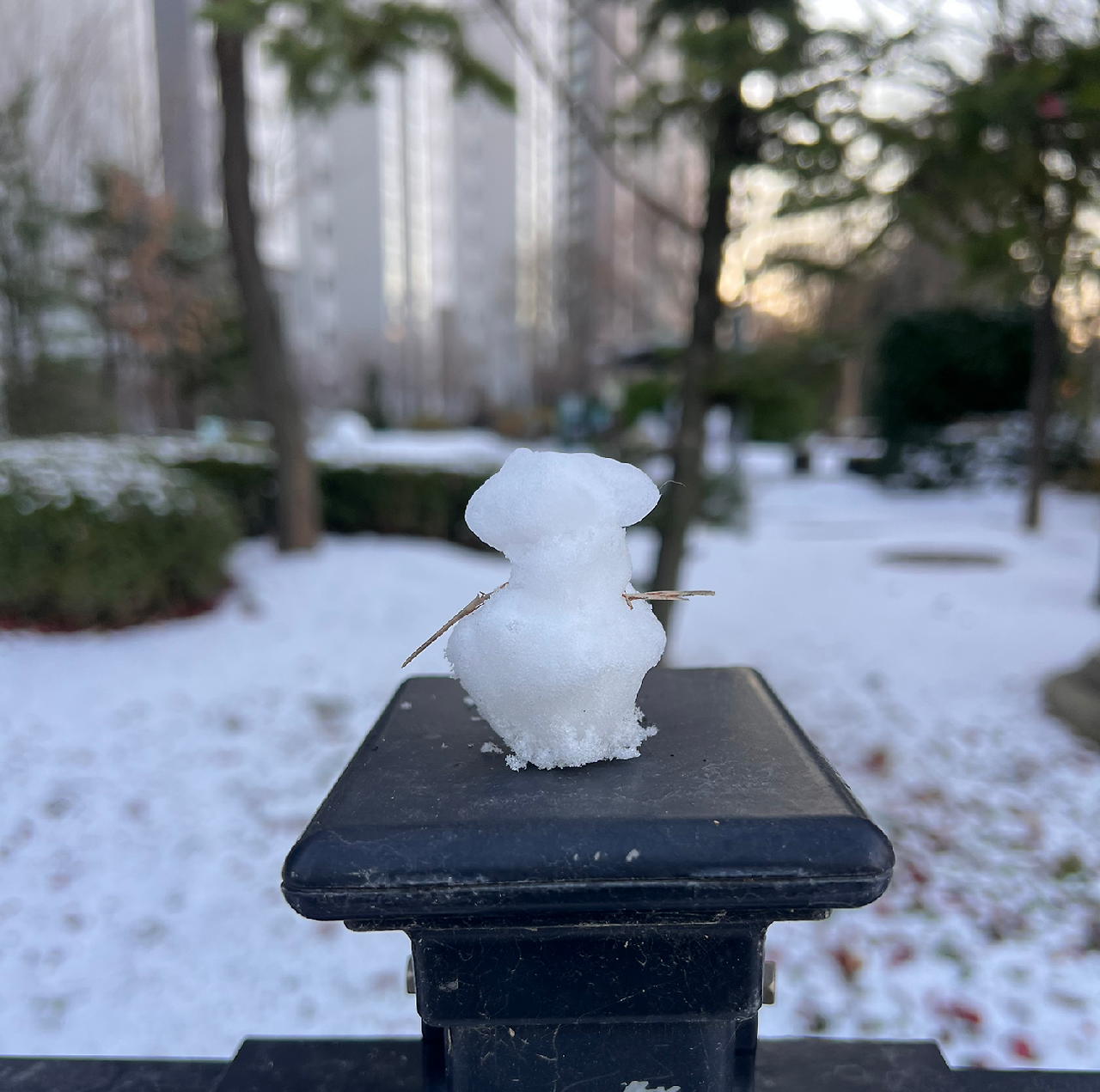 일하러 가다가 만든 작은 눈사람