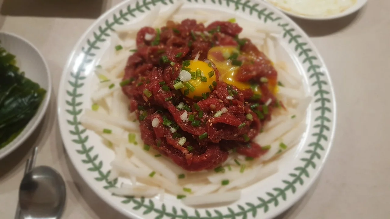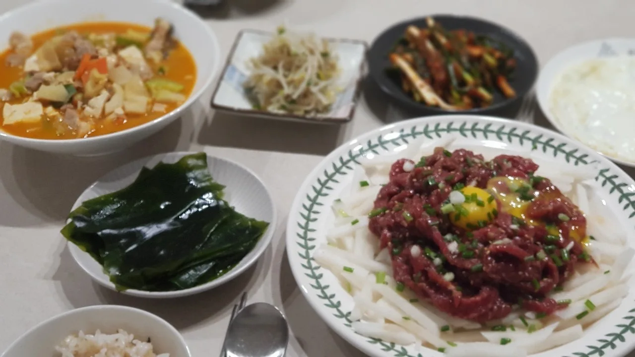 소고기 육회로 집밥 차려 봤습니다.