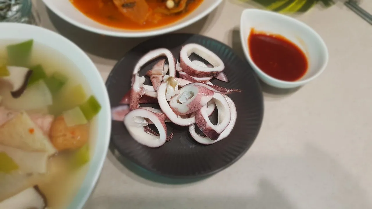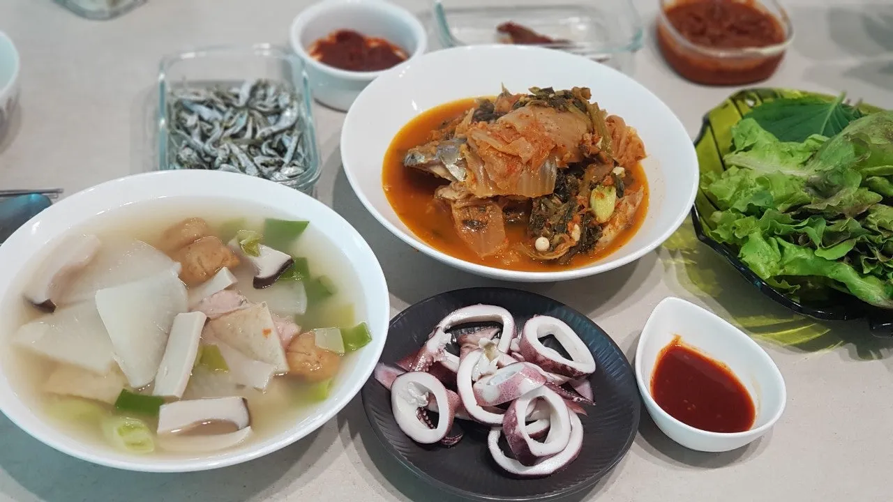 오직어 숙회, 어묵탕 등으로 구성해 본 식단입니다. >_<