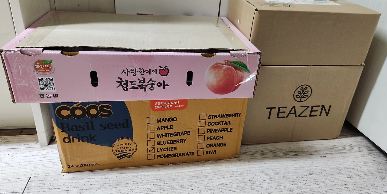 지난 주말을 복숭아를 씻고 자르고 통에 채우던 일에 반사를 외쳤던 내가 다시금 딱딱이복숭아를 구매했다. 집에 있는, 같은 브랜드의 똑같은 세트의 화장품을 친구선물용으로 구매한 것도 왔다.