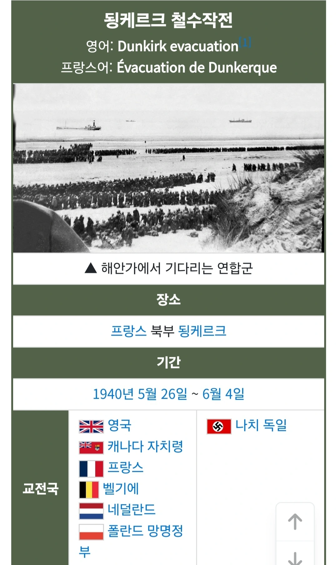 <출처 : 나무위키 '됭케르크 철수작전' 중 캡처>