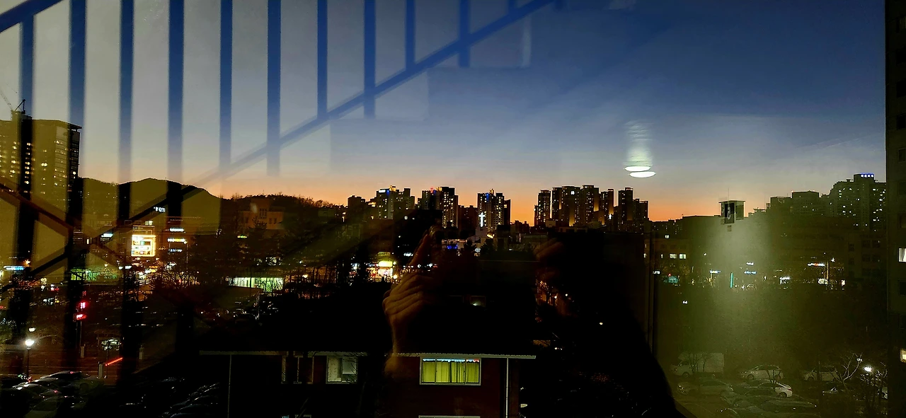 엘리베이터 옆 계단창에서 찍은 사진이다.