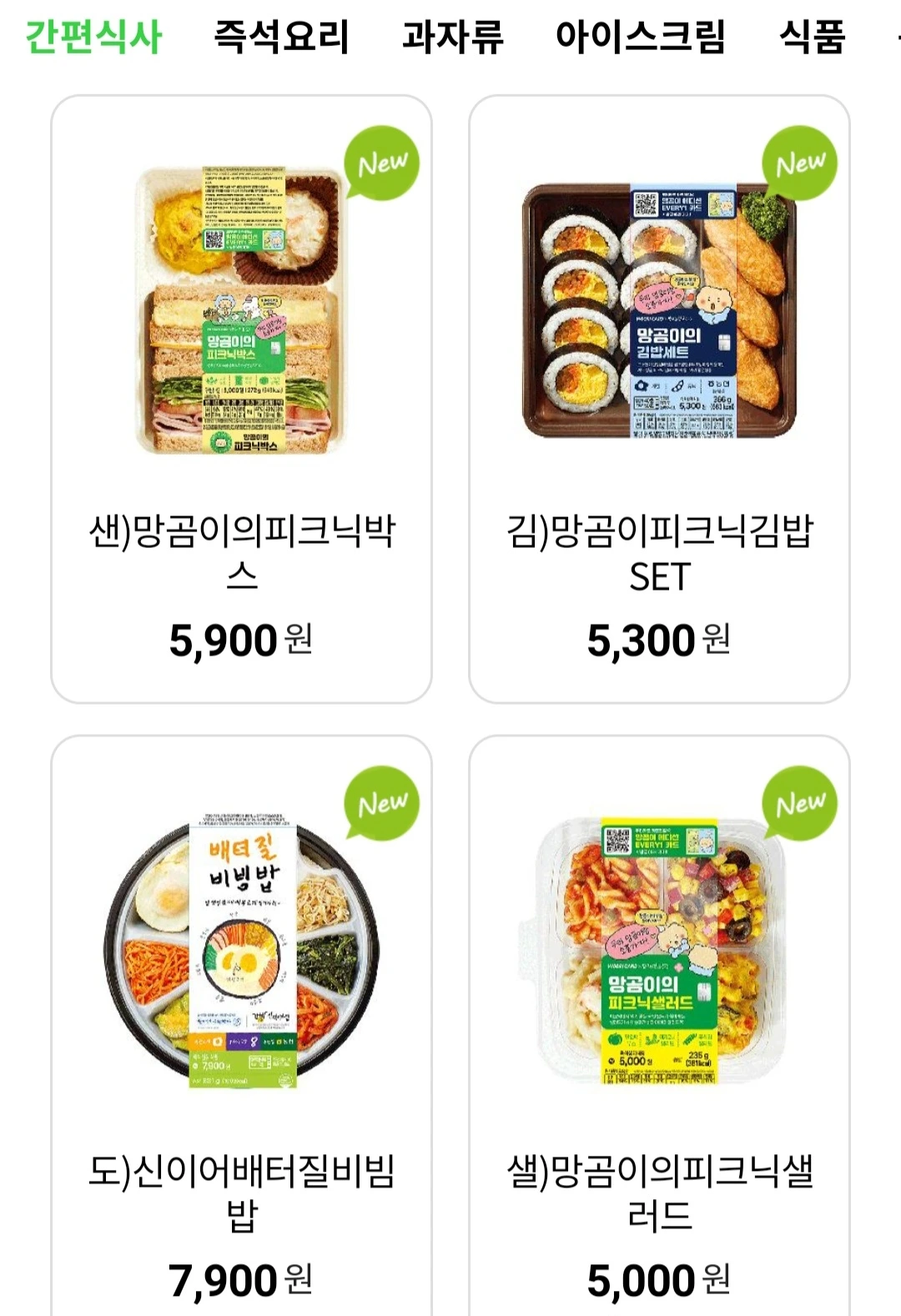 위의 사진처럼 나들이를 겨냥한 산뜻해 보이는 도시락과 단품류가 보인다. 급히 계획과 준비 없이 나서는 나들이에도 편의점에서 쓱 골라둔 메뉴로 즐거운 한 때를 보낼 수도 있어 보인다.