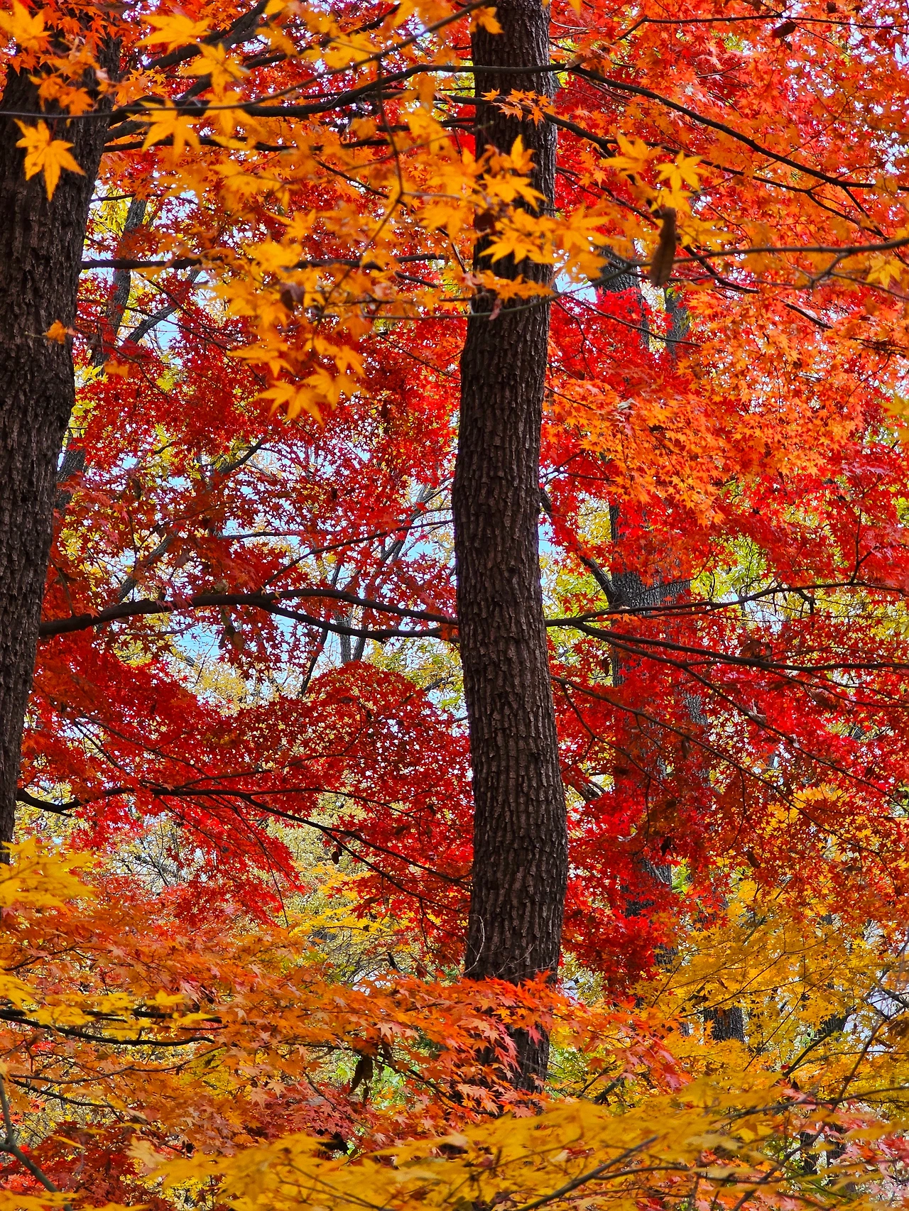 간혹 다 물들지 못하고 지쳐 떨어진 나무들도 있지만..