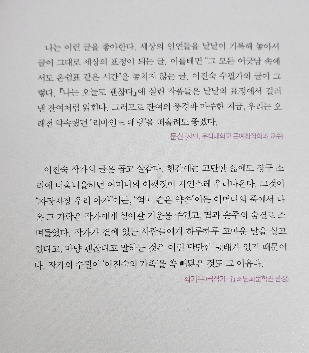 #나는 오늘도 괜찮다#이진숙#수필집#