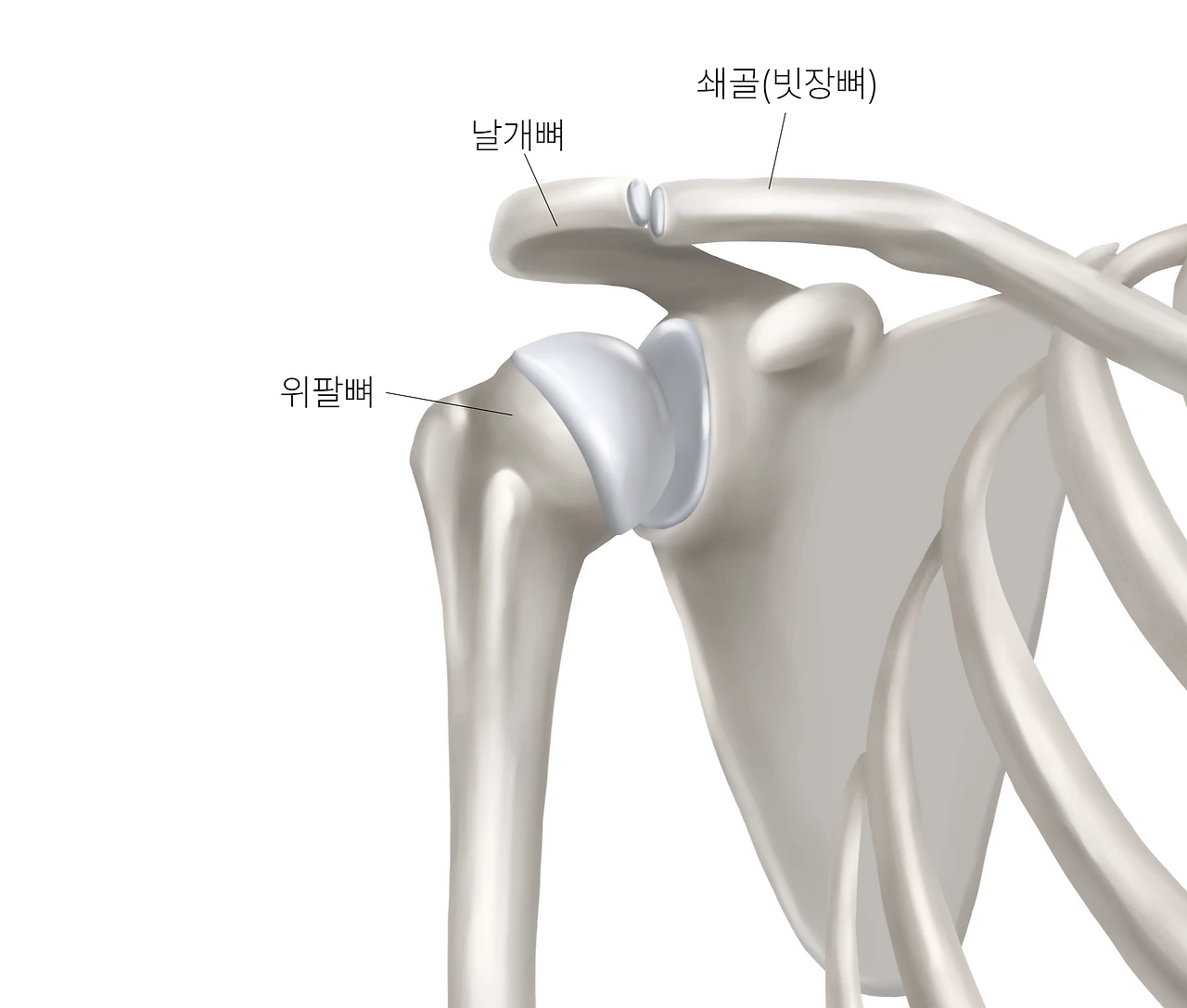 위팔뼈는 '접시오목' 위치에서 결합된다. 프라모델의 모형과 제법 비슷하다. 프라모델과 다른 점은 장난감처럼 뼈끼리 딱 껴지는 게 아닌 팔뼈는 그냥 걸쳐져 있다. 날개뼈에서 팔은 근육과 인대에 의해서 지탱되고 있어, 다소 안정성은 떨어진다. 근육의 컨디션에 의해 어깨가 약간 빠지거나 뚝뚝 소리가 나는 일도 빈번하다.