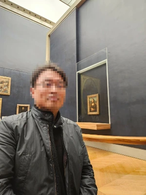 사람들, 아니 필자도 마찬가지였지만 사진기에 담기 바빴다. 물론 많은 사람들에 기다리고 있고, 생각보다 그림이 작아서 눈으로 담기 어려운 상황이었다. 그리고 모두 모나리자의 얼굴과 미소 그리고 없는 눈썹에 집중한다.
