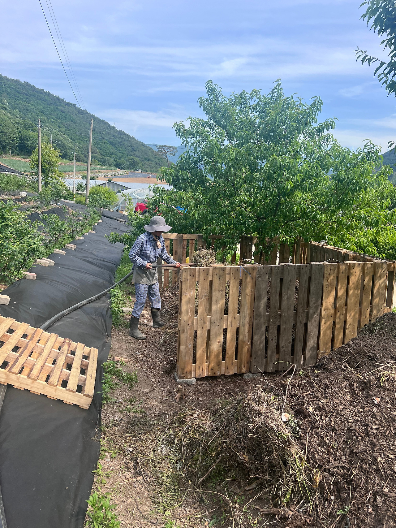 어렵사리 심은 옥수수밭을 쑥대밭으로 만들어버린 고라니 덕택에 예정에 없던 팬스 작업을 하게 된 노에미(폴란드에서 찾아온 우퍼)와 빈센트(스코틀랜드)에게 “양봉 작업을 하다 코에 벌에 한방 쏘였어”라며 웃으며 말을 건다. 눈이 휘둥그레진 노에미와 빈센트에게 “하루에 10방까지 쏘인 적이 있어”라며 너스레를 떠는 곽 농부.