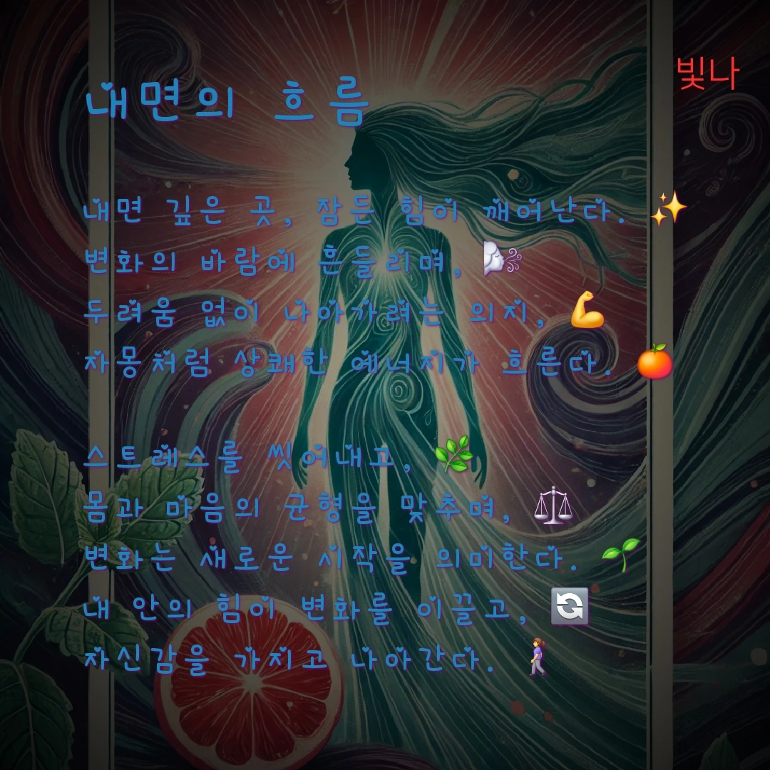 자몽: 맞아, 내가 스트레스 해소에도 효과적이야. 몸과 마음이 가벼워지면 너도 더욱 자유롭게 흐를 수 있을 거야.