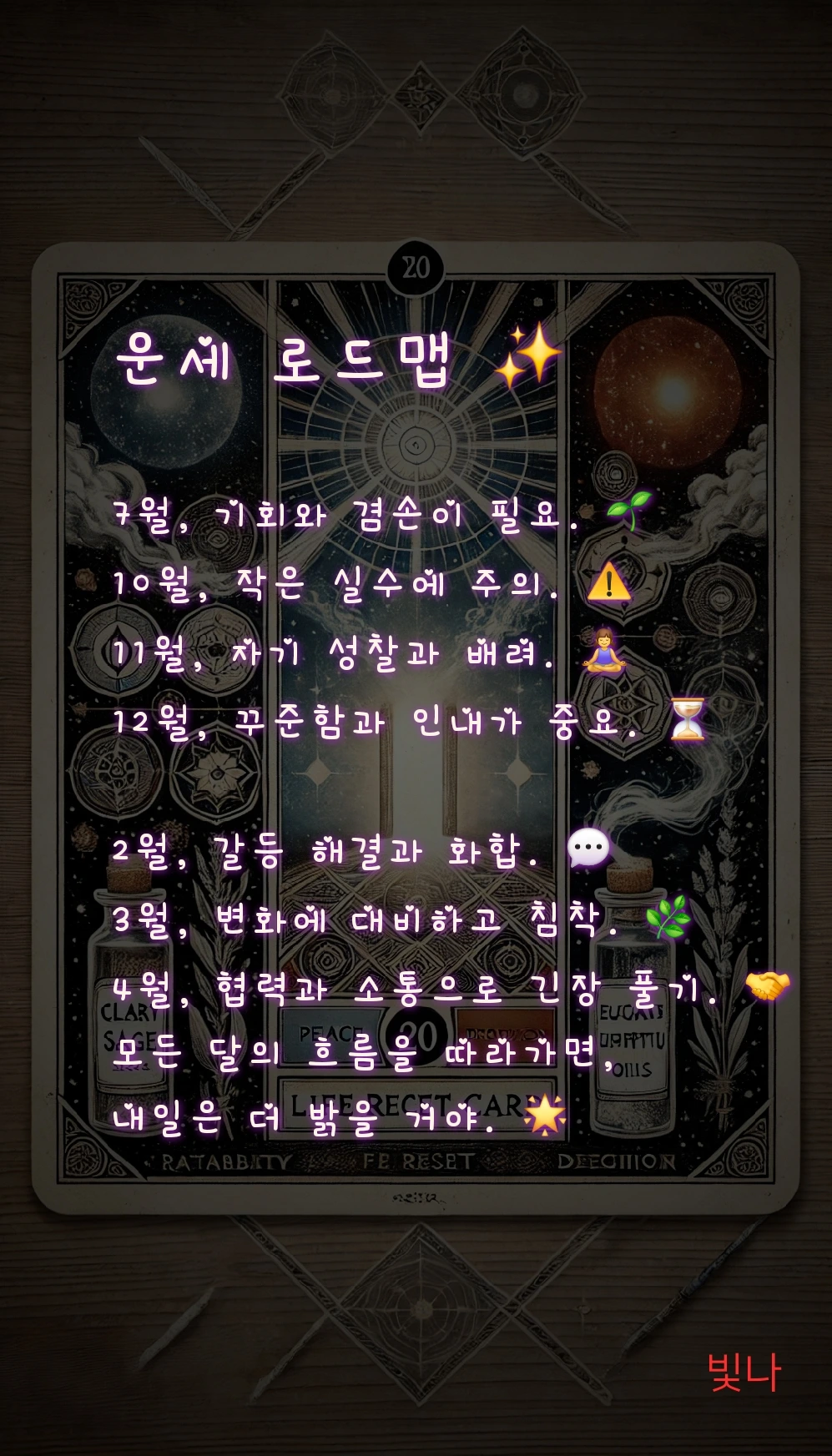도화살: 그 색들이 오늘의 에너지를 잘 표현해. 그중에서도 숫자 20은 균형의 상징이야. 오늘 내가 균형을 이루고 있다는 걸 느꼈어.