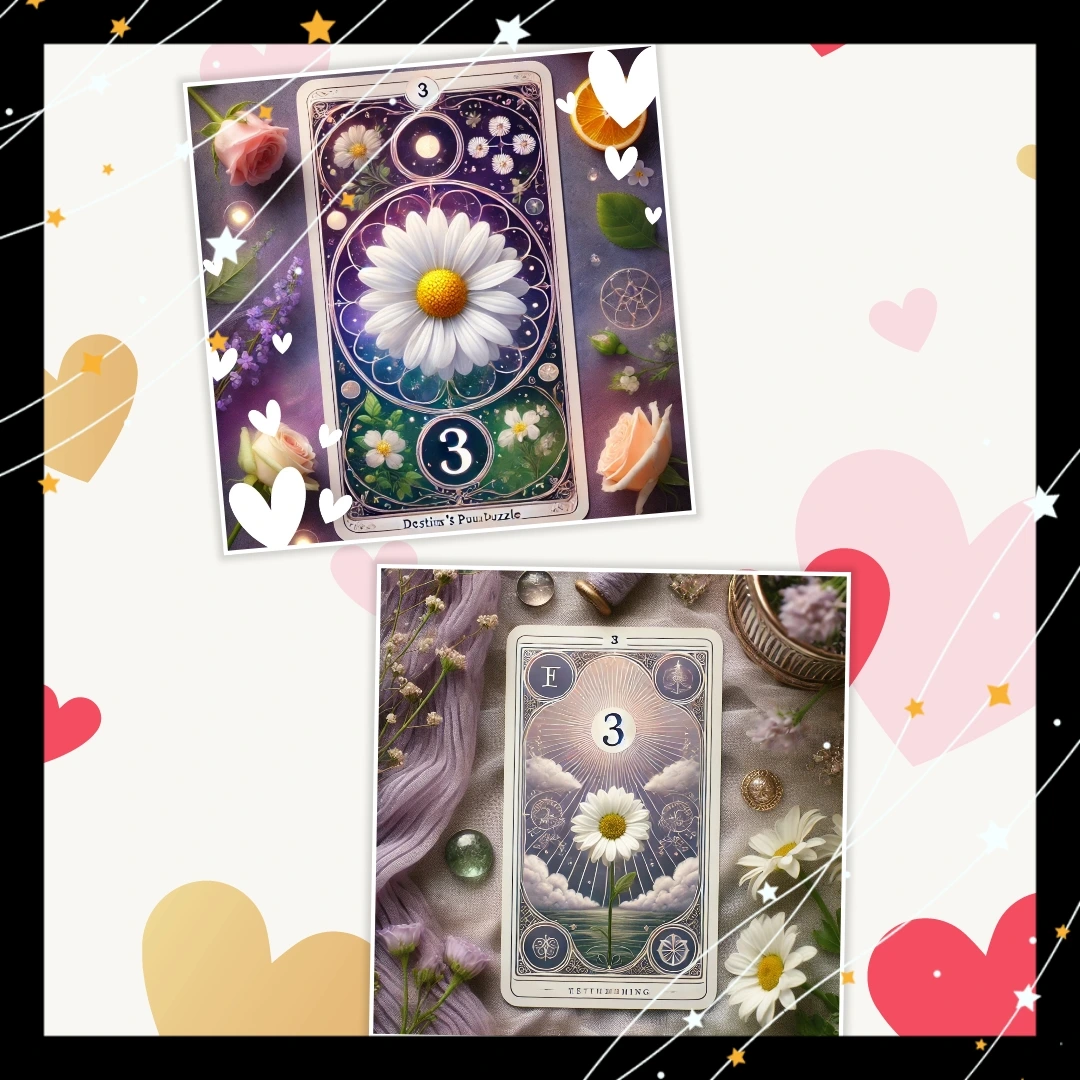 “마지막으로 ‘성찰의 문’과 ‘연인 카드’. 성찰의 문은 나를 깊이 들여다보며 성장하는 과정이고, 연인 카드는 조화와 사랑의 의미를 담고 있어.”