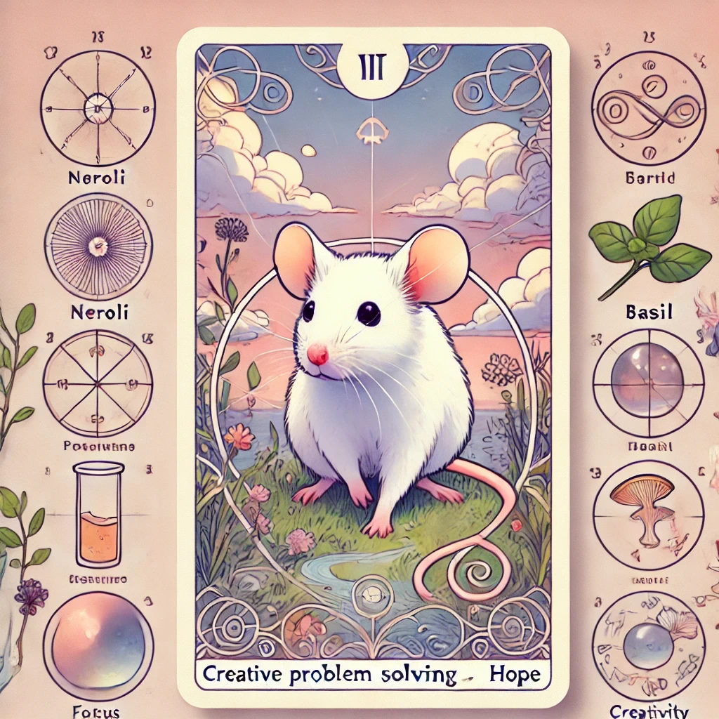 “‘희망 메신저, 흰 쥐’ 카드야. 흰 쥐는 작지만 빠르고 지혜로워. 작은 변화가 큰 성장을 만든다는 의미지.”