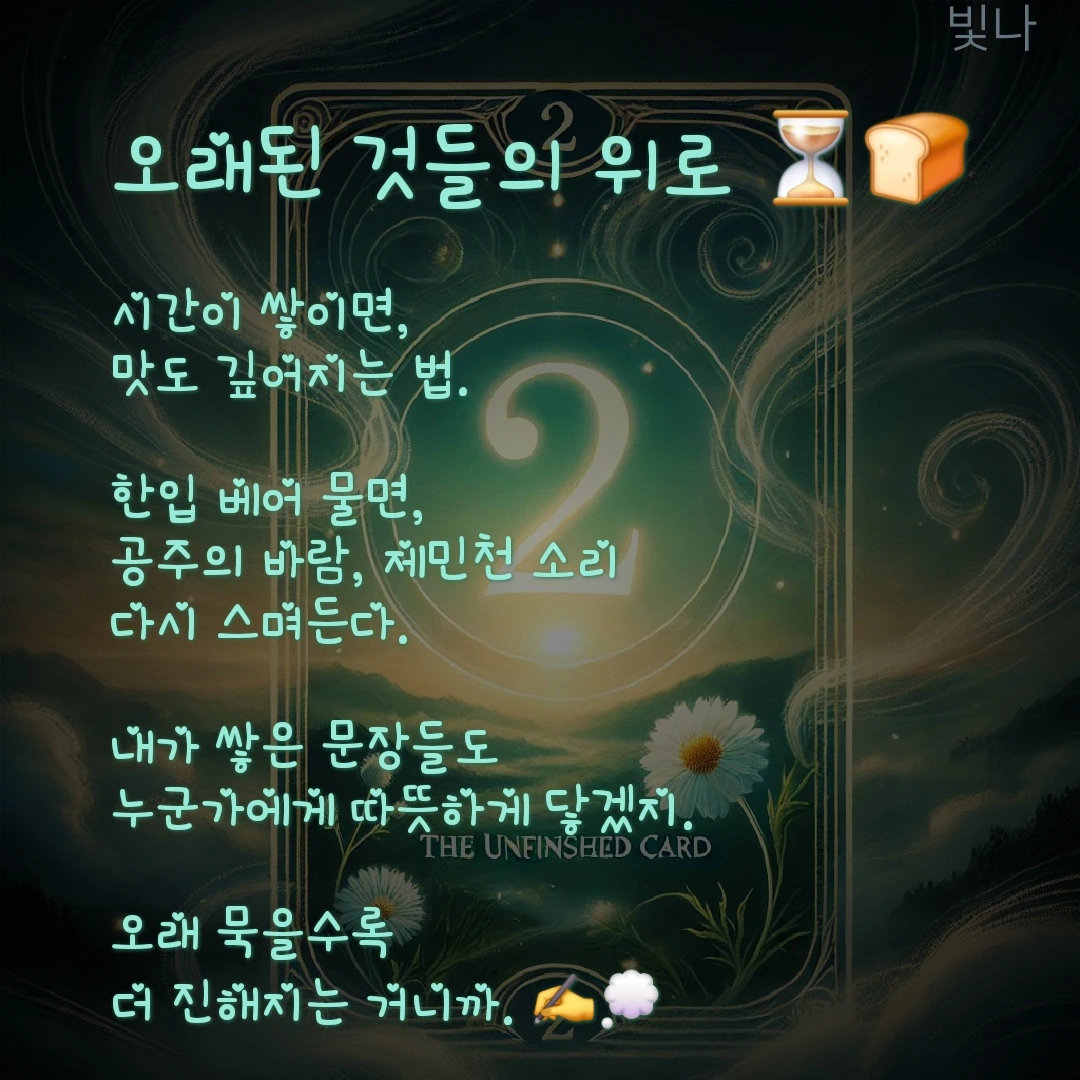 이렇게 하루를 마무리하며 따뜻한 빵을 베어 물다 보니, 문득 이런 생각이 들었다. 오래된 것들이 깊은 맛을 내듯, 오랜 시간 공들인 이야기도 언젠가 누군가의 마음에 깊게 스며들겠지. 공주의 시간도, 그리고 나의 글도.