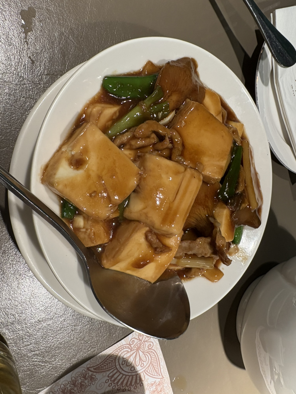 동해대학: “조림두부, 마파두부, 파 계란볶음. 처음엔 맥주 600cc 한 병만 마시려고 했는데, 너무 맛있어서 결국 두 병 마셨음.”