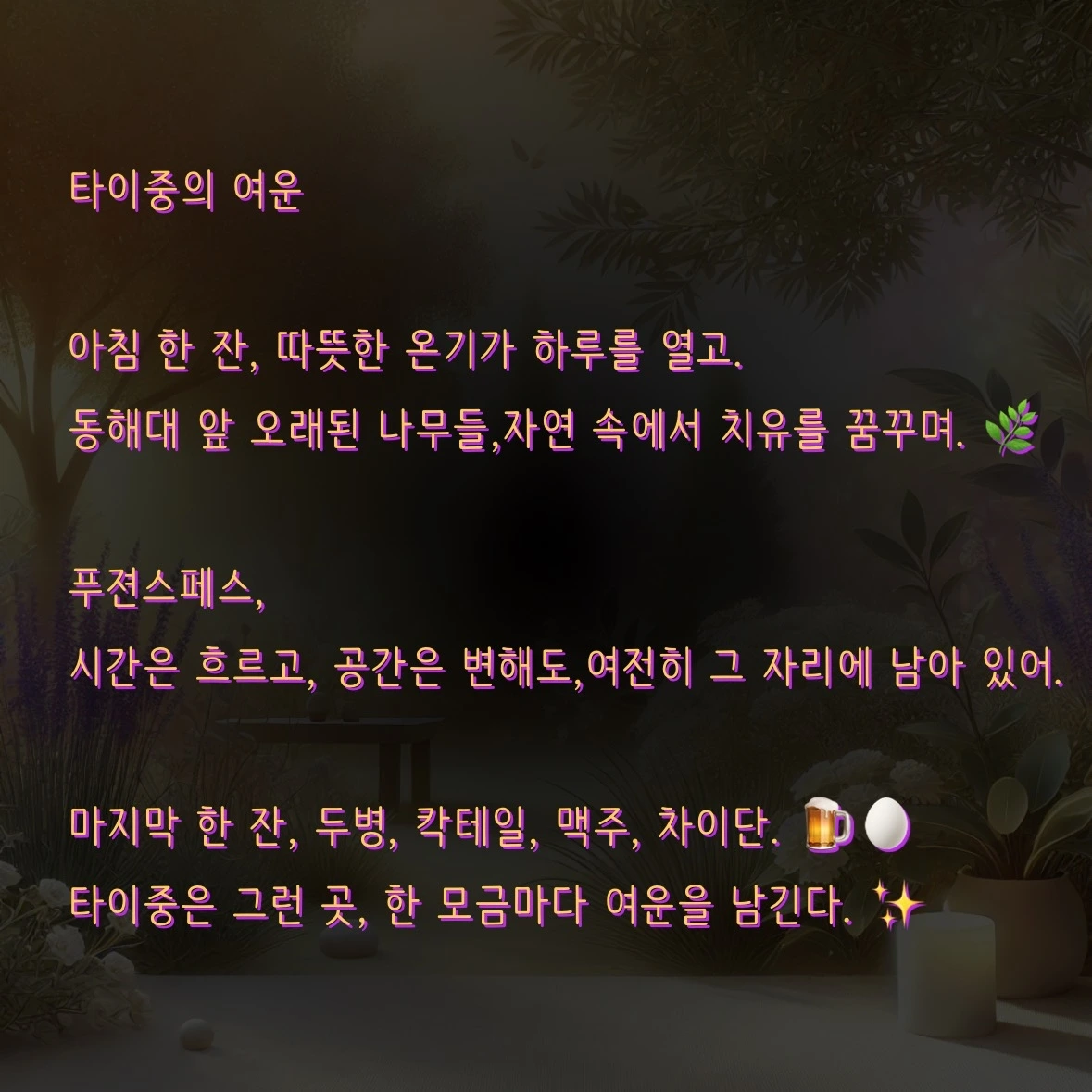 동해대학: “ㄹㅇ. 근데 이게 타이중의 맛이 아닐까 싶다 한 입, 한 잔마다 남는 여운이 다 좋았음.”