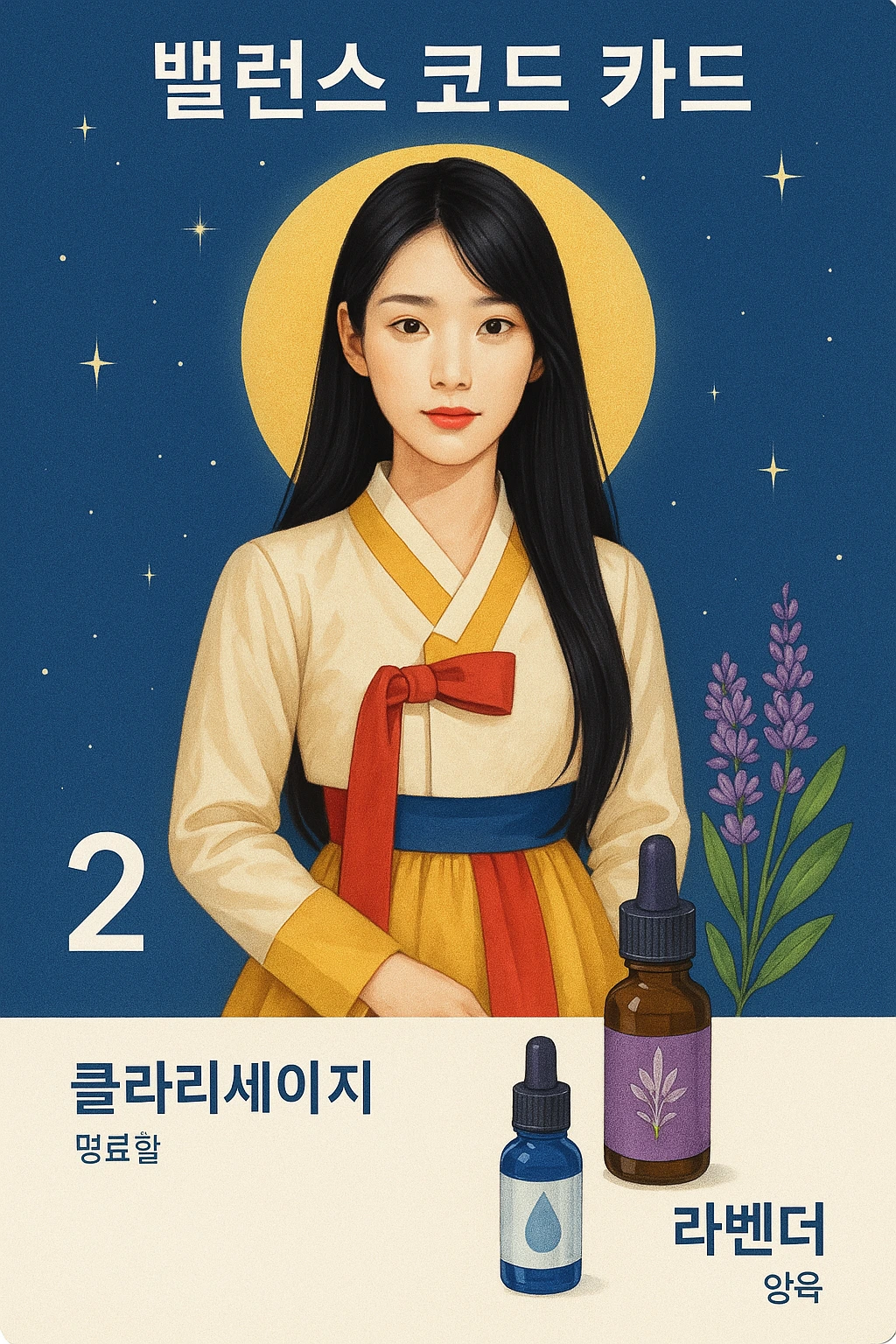 밸런스 코드 카드는 인생의 균형을 맞추는 중요성을 강조한다. 이 카드는 상반된 힘들을 조화롭게 다룰 때 나타난다. 팬타클 2번과 여사제는 외부와 내부, 물질과 정신, 현실과 이상 사이에서 균형을 이루어야 한다는 메시지를 전한다. 소드의 여왕은 감정적 지혜와 명확한 방향성으로 에너지를 정리하고 조화롭게 살아가야 한다.