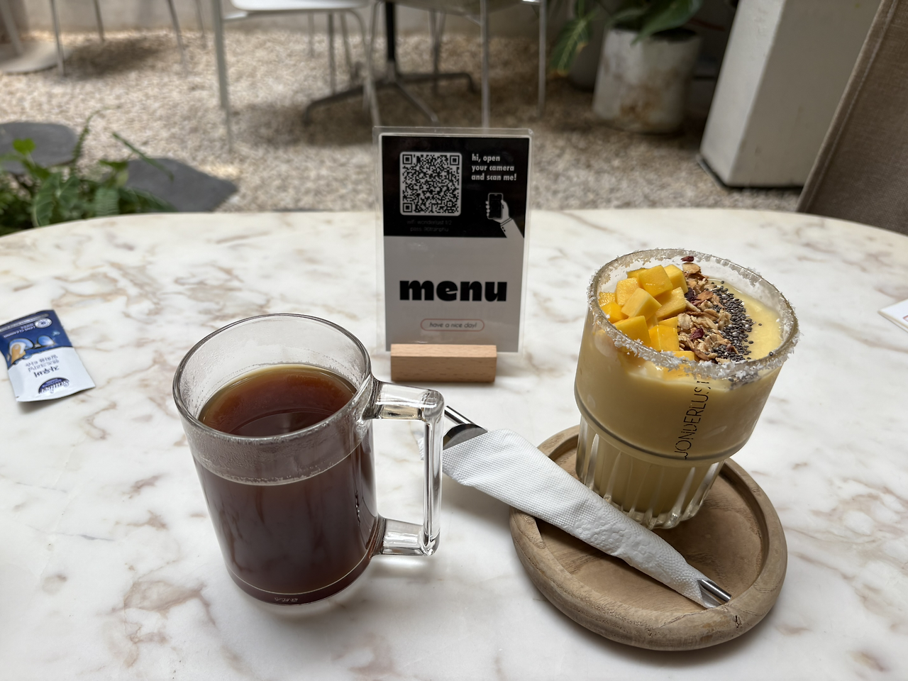 라벤더: “맞아, 햇살이 좋았던 그 자리. 식물들과 스무디, 커피 사이에서 나는 잠깐 멈춰 있었어.”