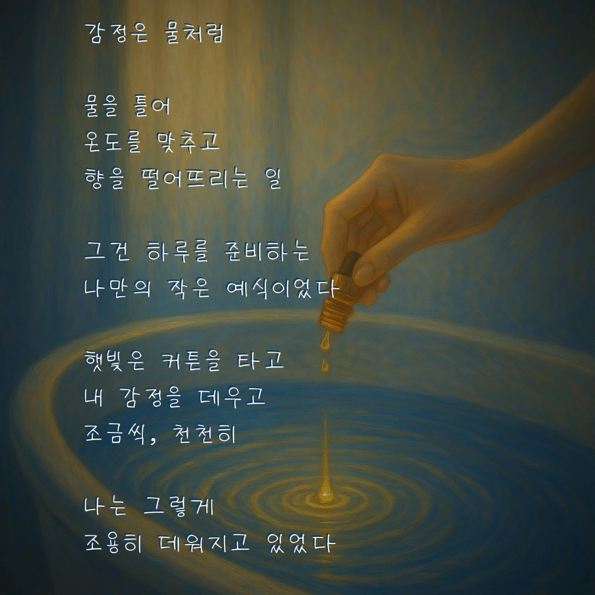 팔마로사: “향기와 물 온도, 그 균형 속에서 마음도 정리됐겠지. 오늘 하루의 리듬은 처음부터 조용히 데워졌을 거야.”