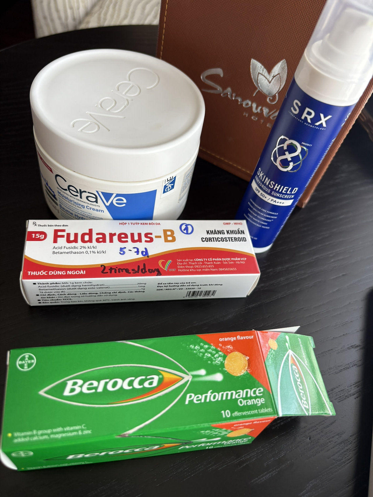 펜타클 기사: 그 뜨거움, 결국 오늘 약국까지 데려왔잖아. 크림, 연고, 자차, 아티소, 비타민. 전부 필요했기에 산 거였어.