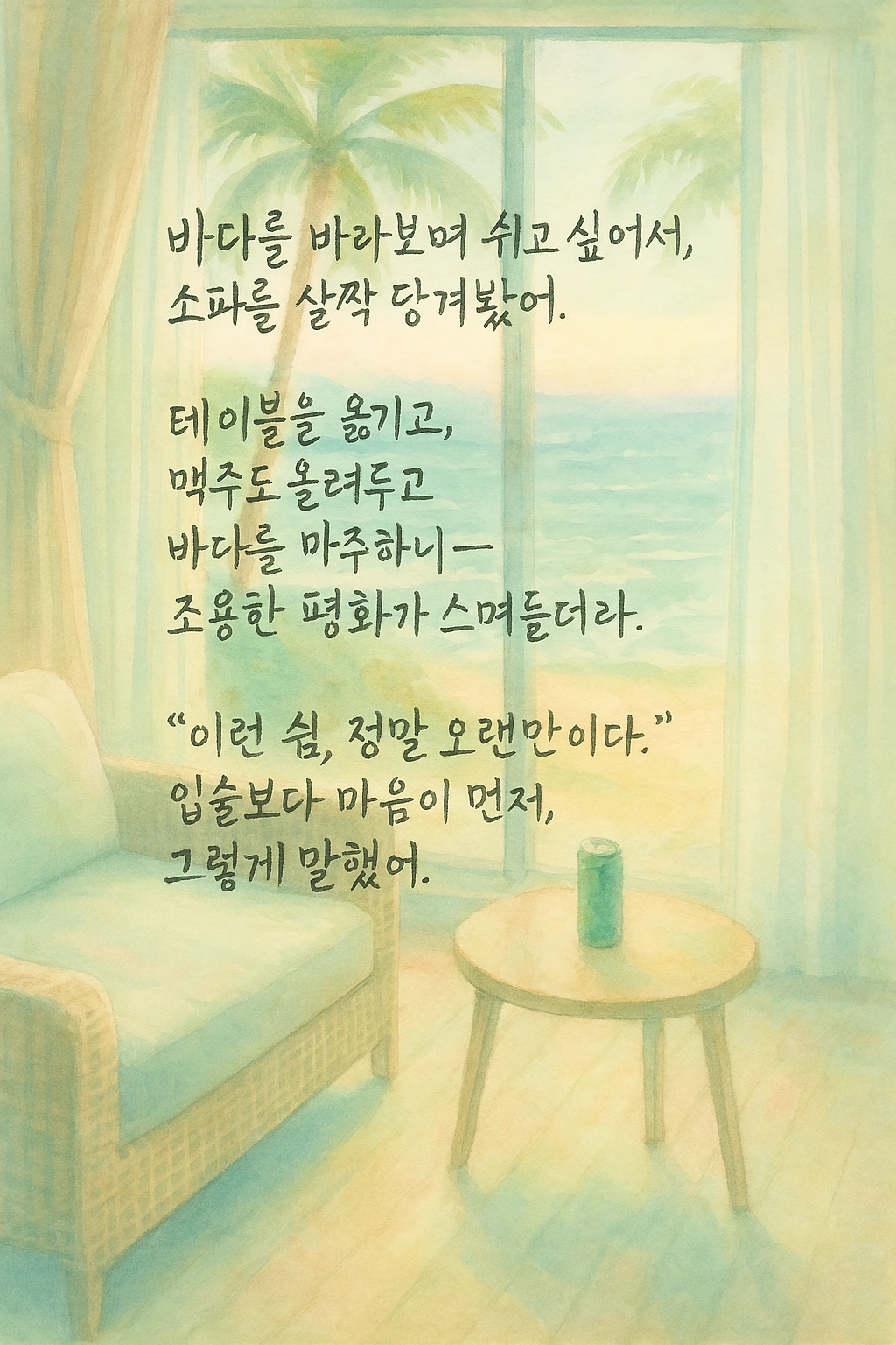 지금처럼 맥주 한 잔, 조용한 공간이면 충분해.”