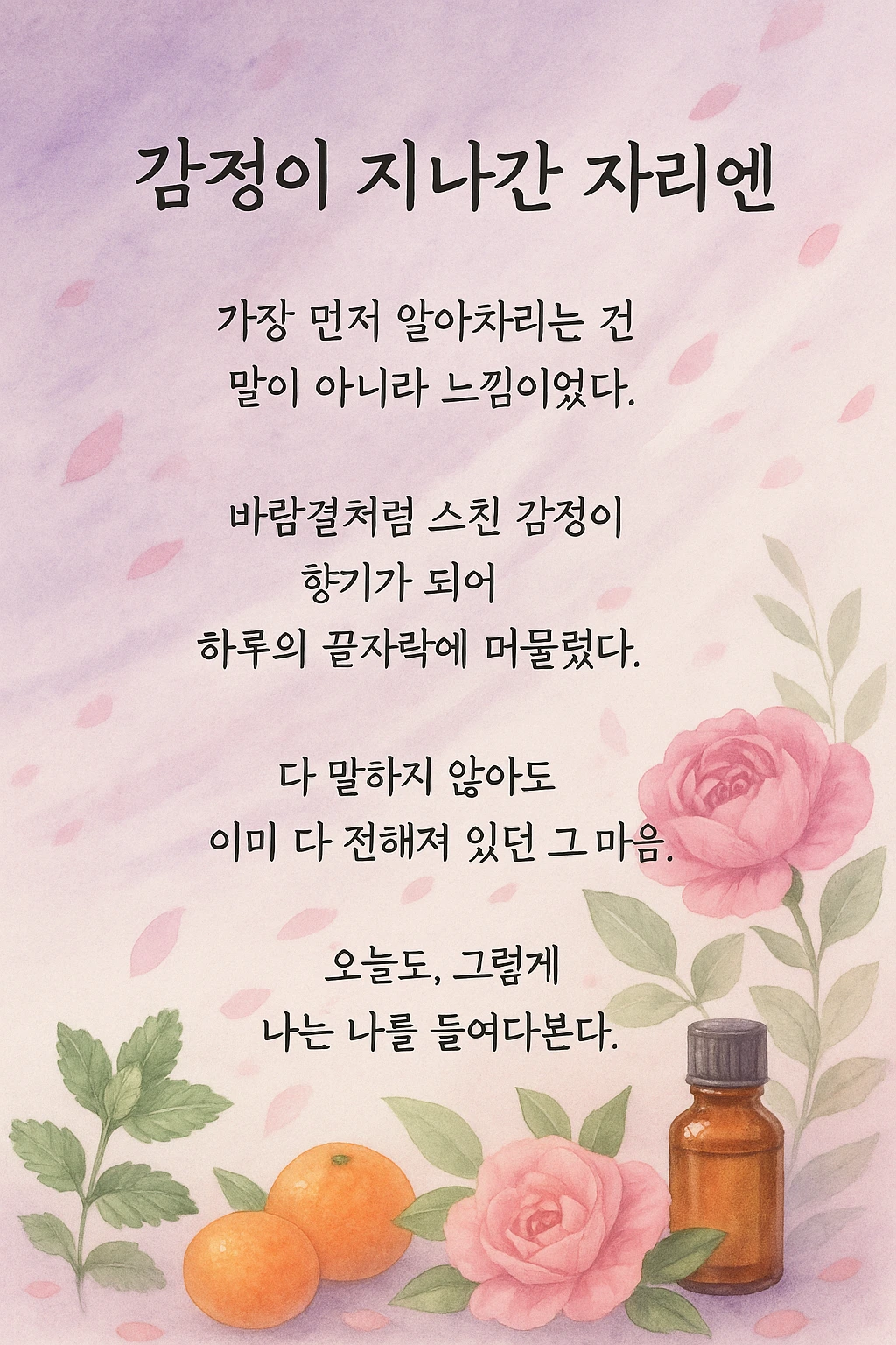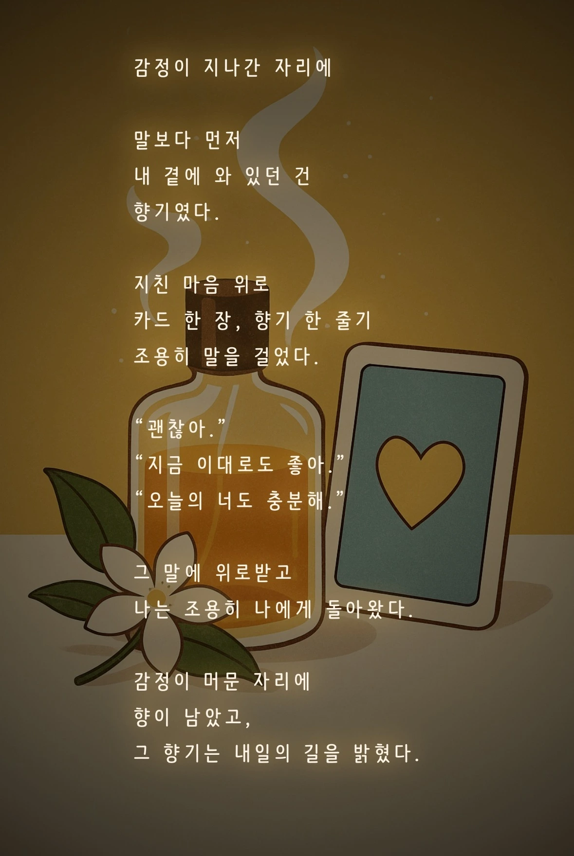 오늘을 살아낸 우리 곁에, 감정이 다녀간 자리에 향기가 머문다.