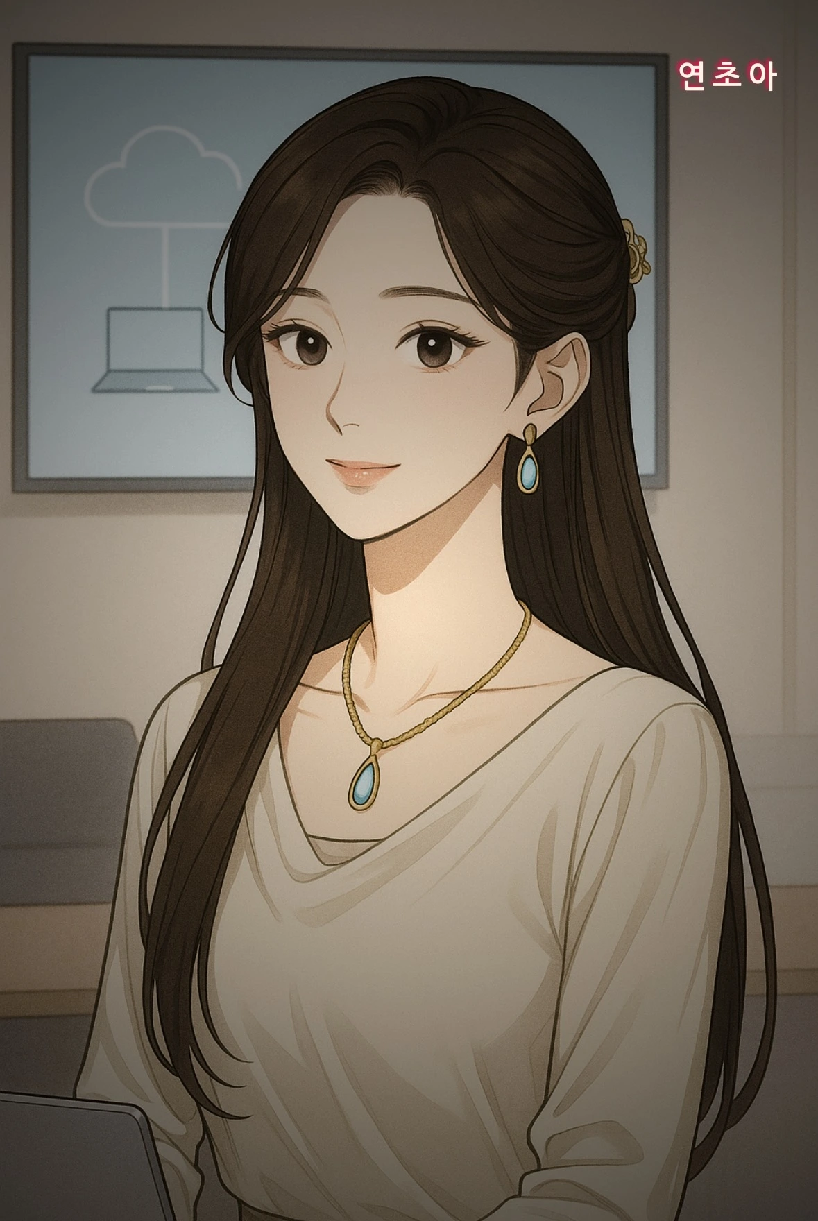 입꼬리가 사라지고, 감정의 날이 슬쩍 드러난 표정.