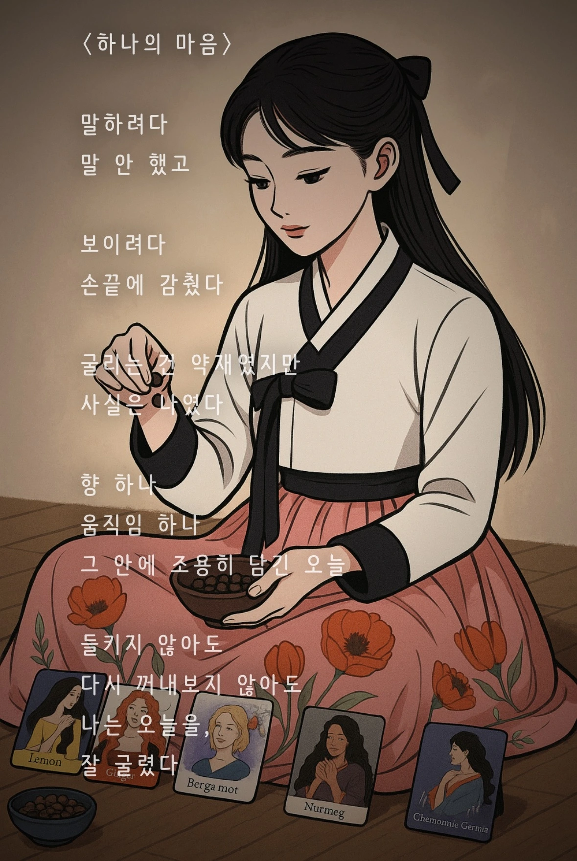 넛맥 (Nutmeg) : 따뜻해졌지? 손으로 굴리면서 내 마음도 같이 데워지는 게 느껴졌어
