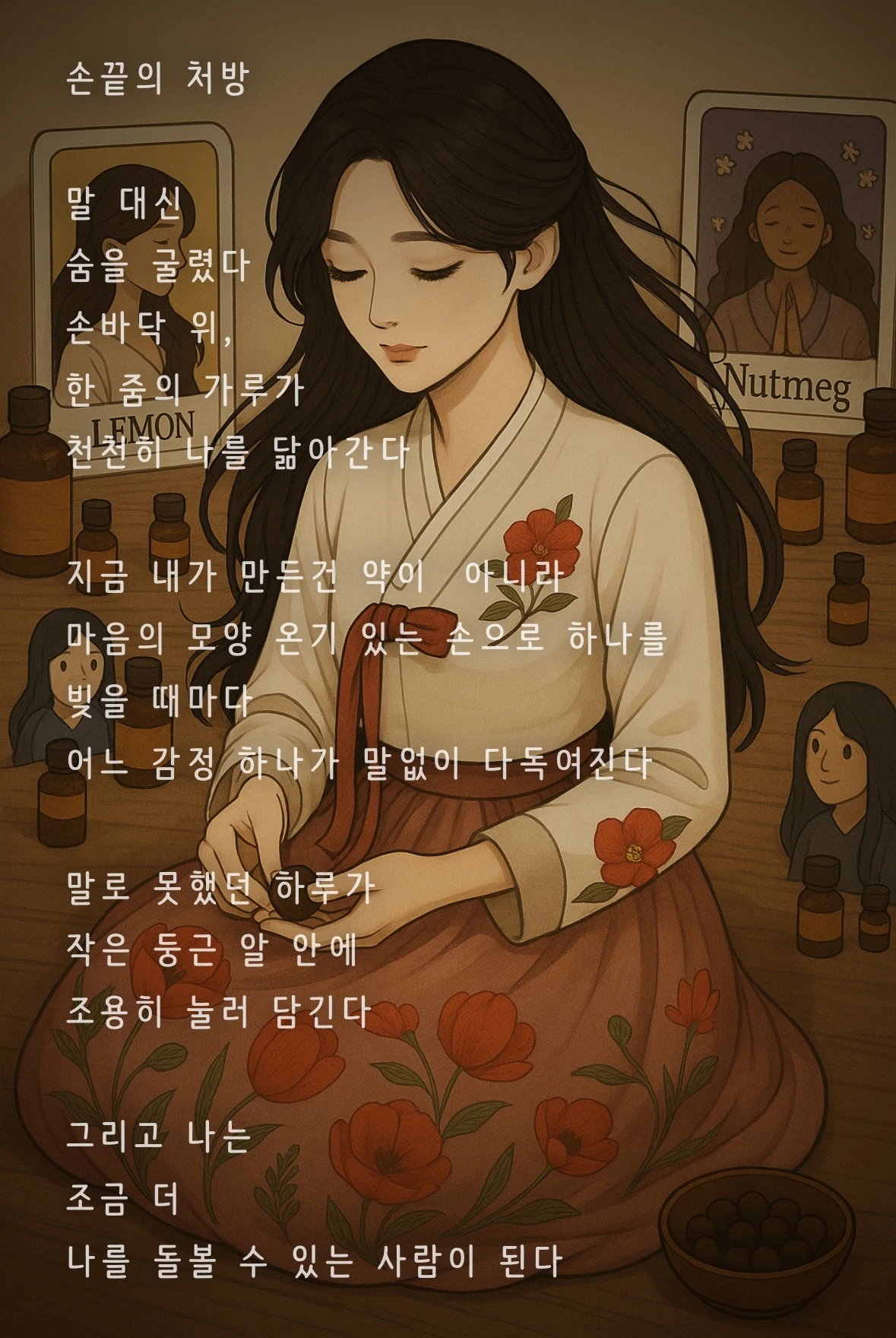 마법사 (The Magician) : 봐봐, 손에 쥔 약재와 지금의 감정만으로도 완성은 가능해