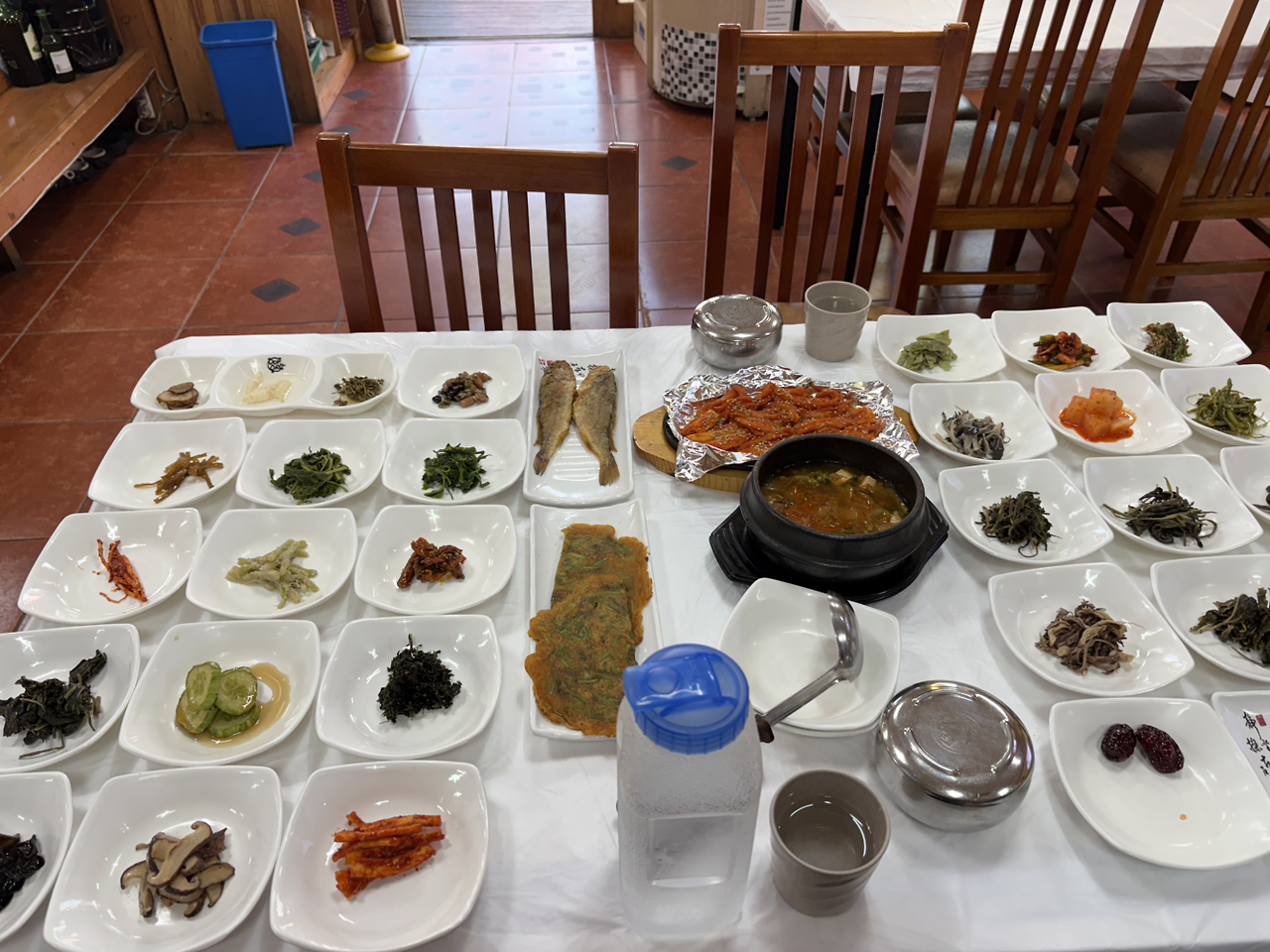 왜가리, 더덕구이정식, 대추차, 단풍꽃일까(?)
