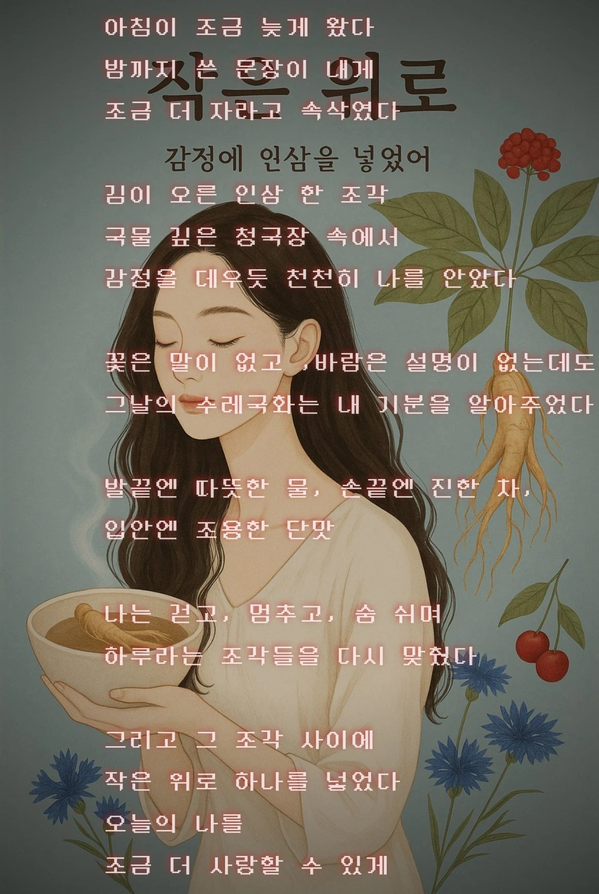 인삼청국장을 천천히 떠먹으며 마음도 데웠다.