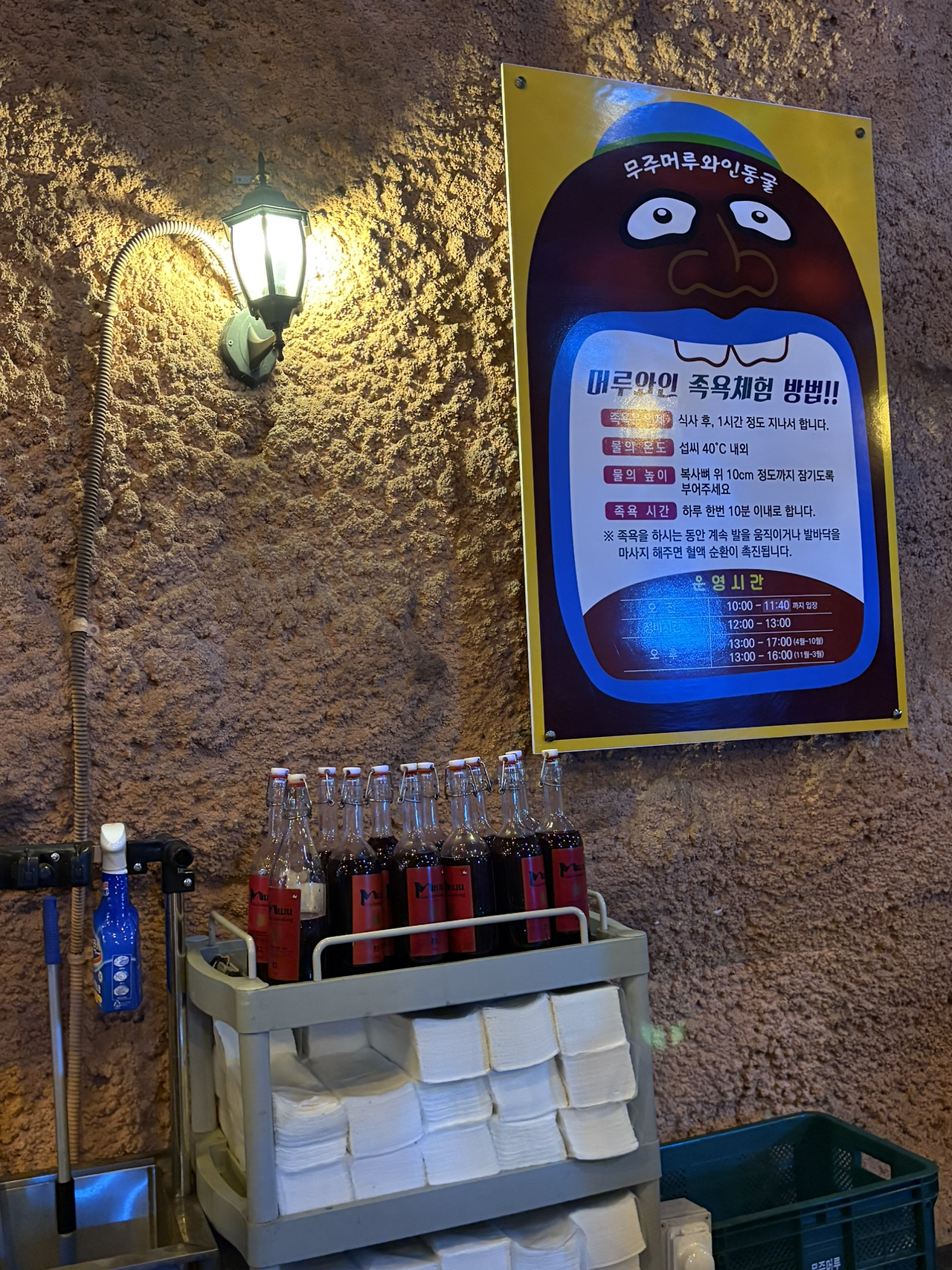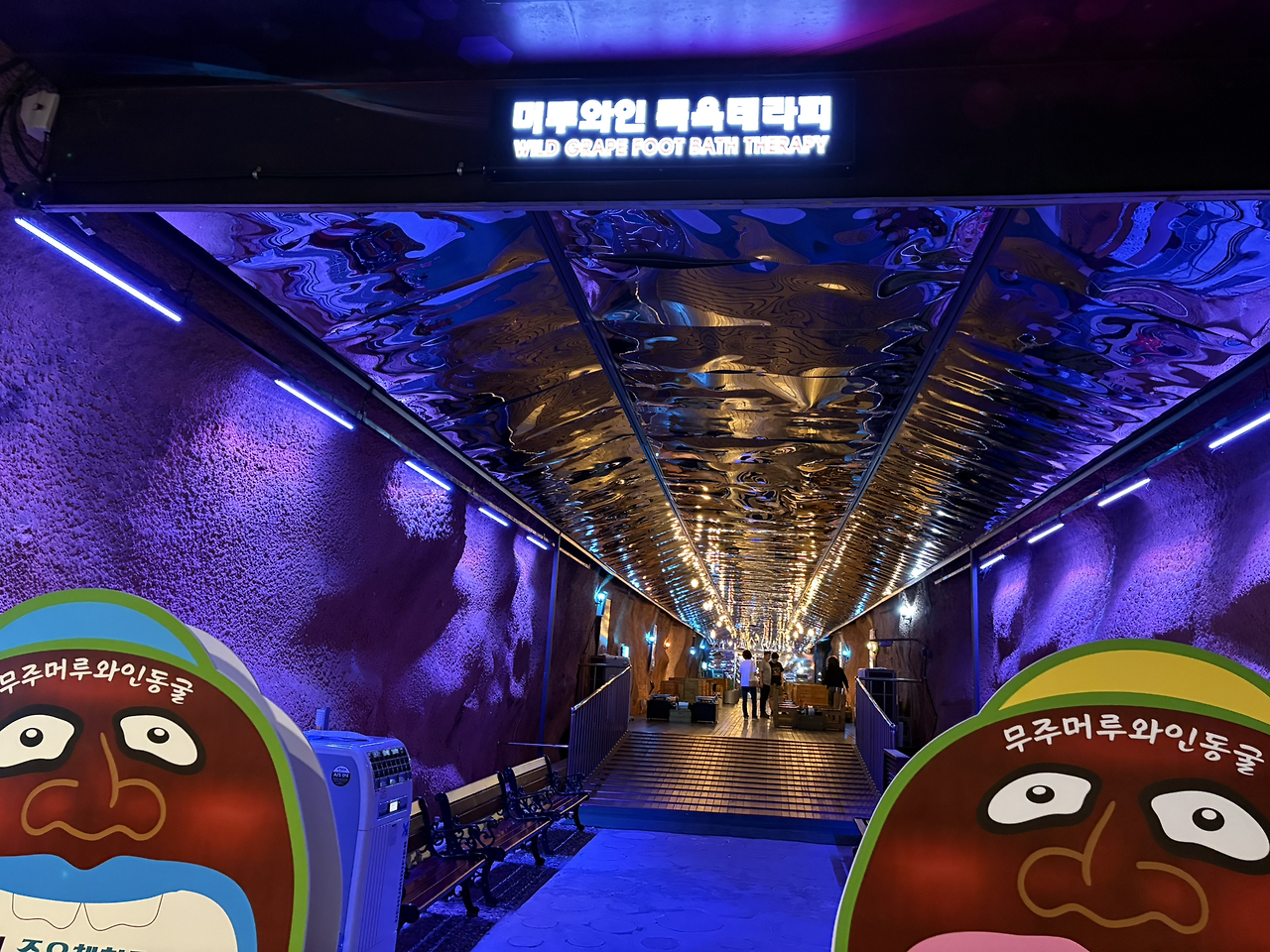 머루와인동굴 속 붉은빛 벽을 따라 걷다 와인 풋스파에 잠시 숨을 풀어놓았고,