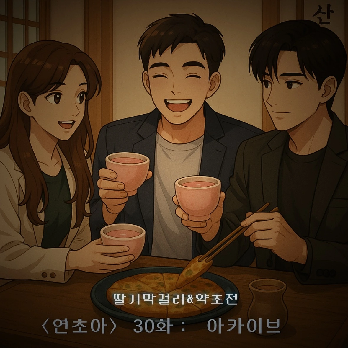 Pine (파인): 어제 꺼내지 못한 생각들이 자꾸 올라왔지? 머루와인동굴에 들어서며 가라앉기 시작했고, 와인 풋스파에 발을 담그며 조용히 풀어냈잖아.