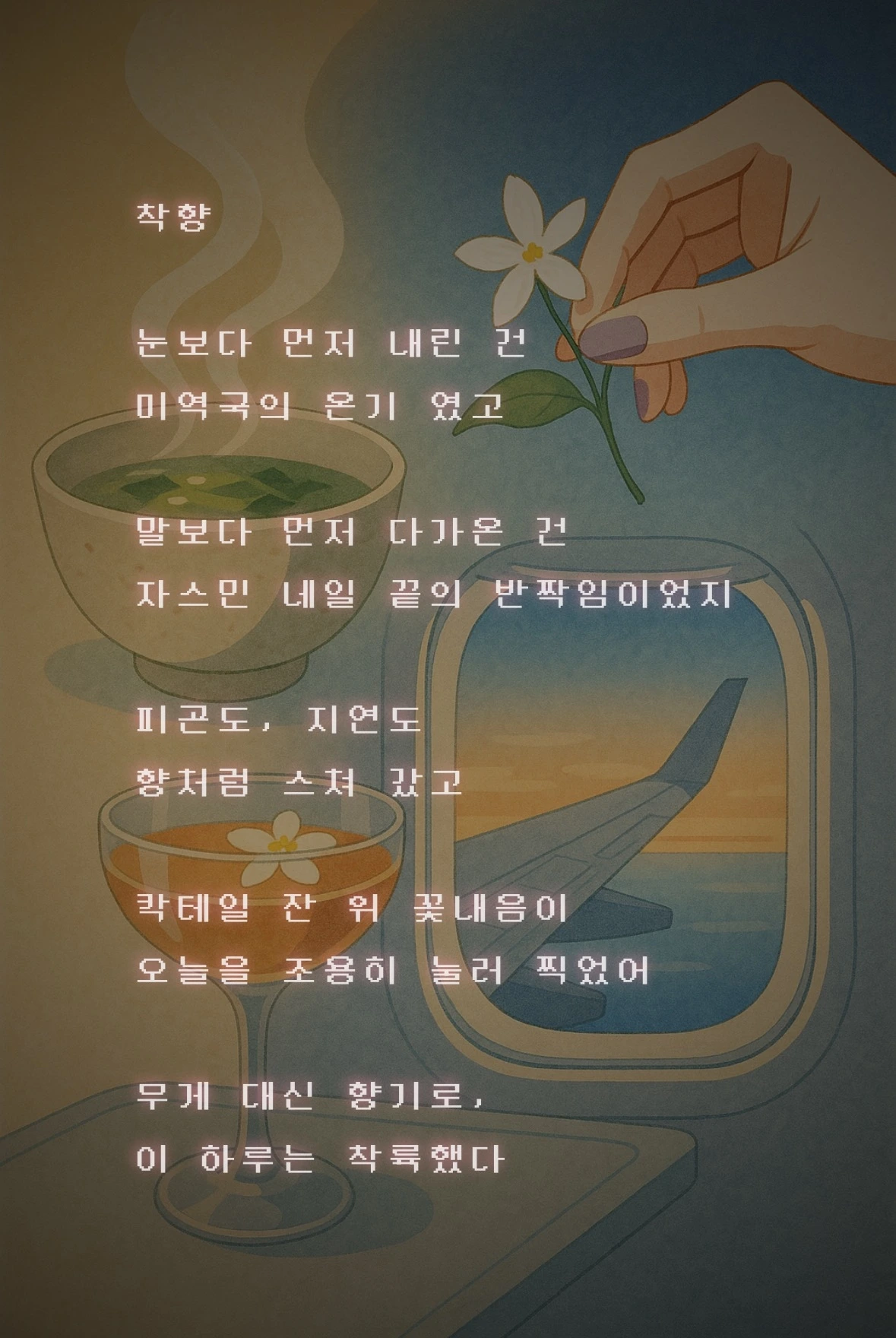 휴대폰 알림: 비행기가 활주로를 눈앞에 두고 있을 때 “7월 1일 출근 확정!” 톡이 왔다.