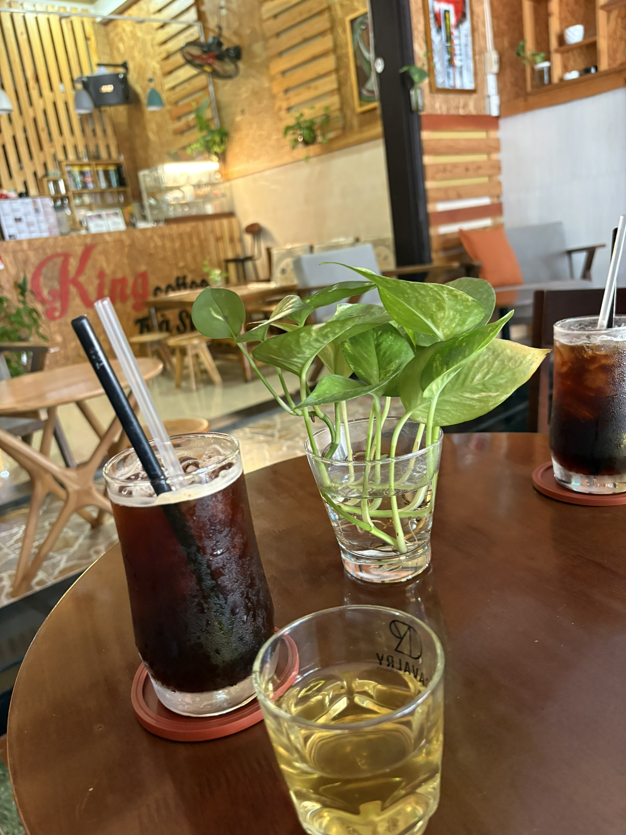 라벤더 Lavender : 천천히 시작했어. 여유로운 바깥풍경보다, 시원한 자리가 먼저였지. 카운터 근처에 앉아 맛있는 커피로 마음을 살며시 달랬어.