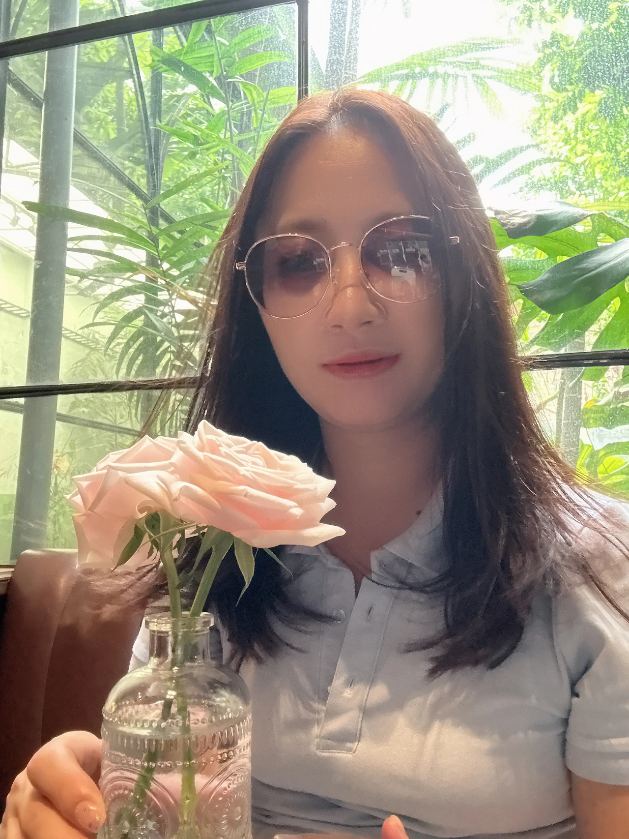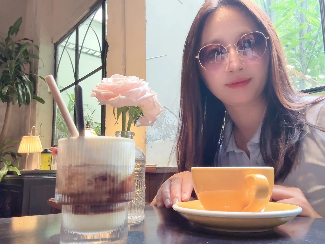 메이창 May Chang : 테이블 위 초록잎이 괜히 눈에 들어오더라. 말없이 조용한 식물 하나가 오늘의 분위기를 대신 말해줬어.