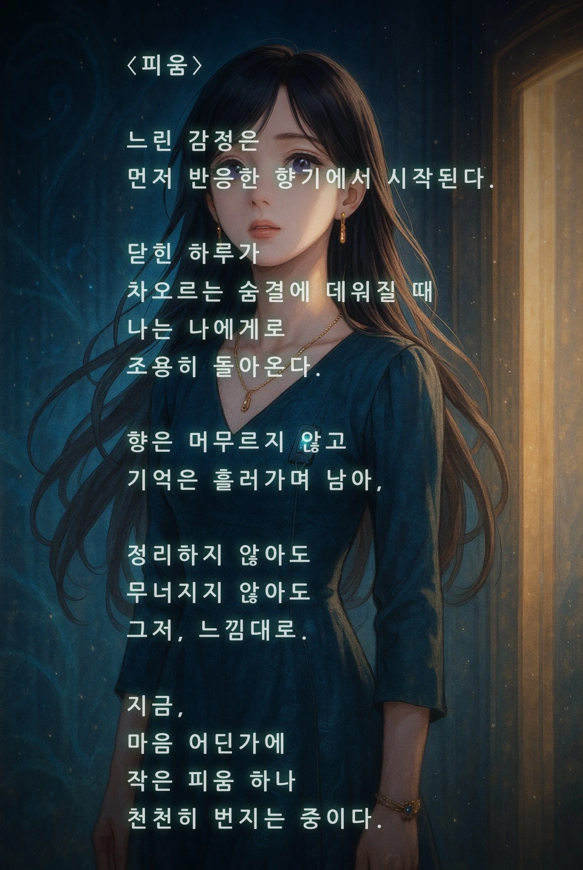 지금, 마음 어딘가에 작은 피움이 번진다. 향처럼, 계절처럼. 아주 천천히, 따뜻하게.