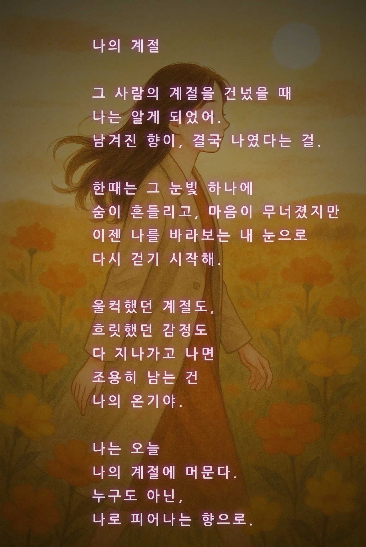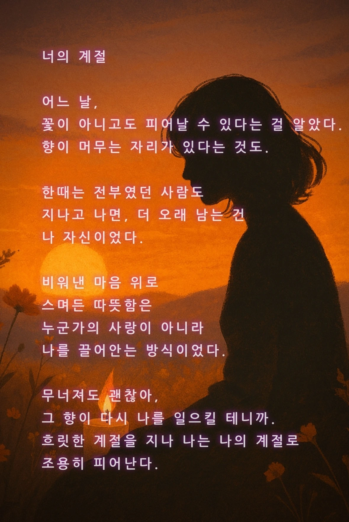 한 계절을 보내는 일은, 다시 살아지는 일의 시작일지도 몰라, 무너졌던 마음이 향기로 다시 펴지는 시간.