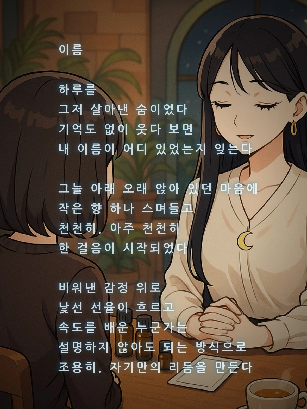 근데 난… 커리어도 없고, 뭐 하나 이뤄놓은 게 없어. 할 줄 아는 것도 없고, 뭘 하고 싶은지도 모르겠고. 몸만 계속 피곤해지고, 마음은 더 작아지고… 나만 멈춰 있는 것 같아.