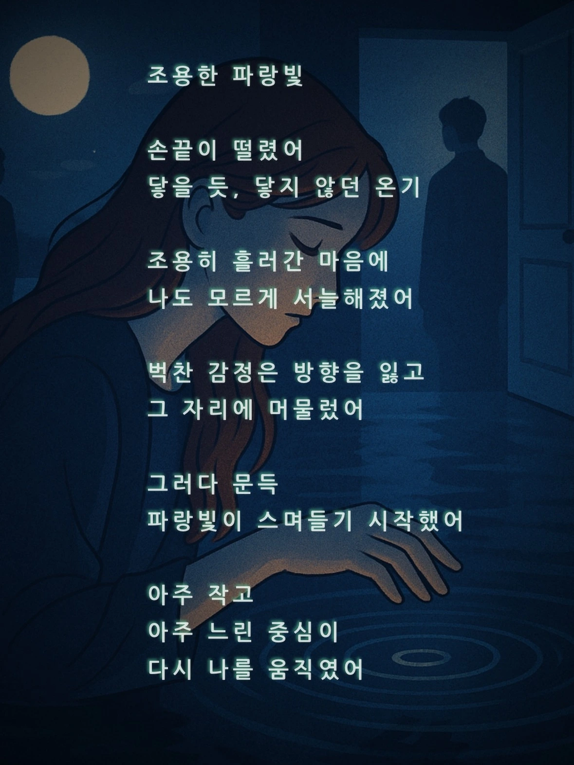 이제야 그 조용한 파랑빛이, 내 안에서 천천히 흘러가기 시작한다.