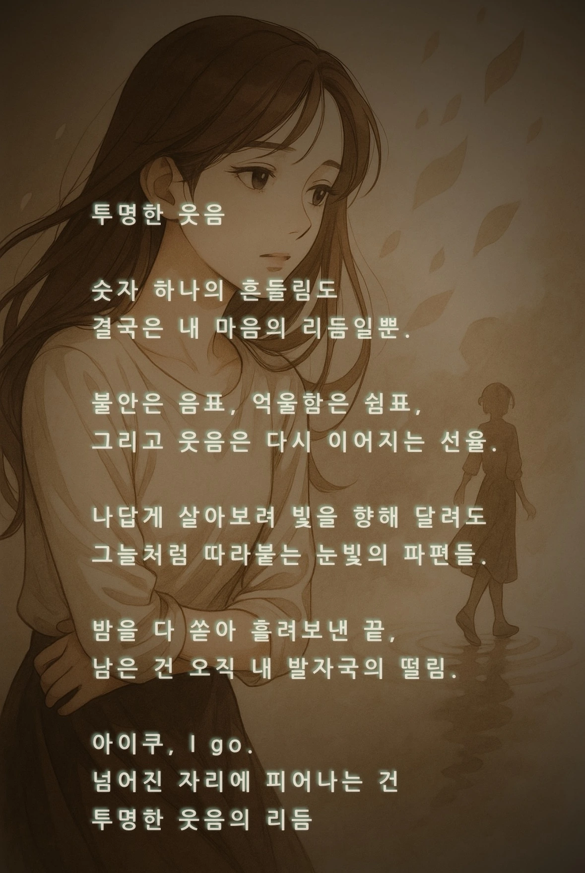삼: 녹색이 퍼져나가는 것처럼 가슴이 트이는 느낌이야. 글로 풀어내면 나만 치유되는 게 아니라, 누군가에게도 힘이 될 것 같아.