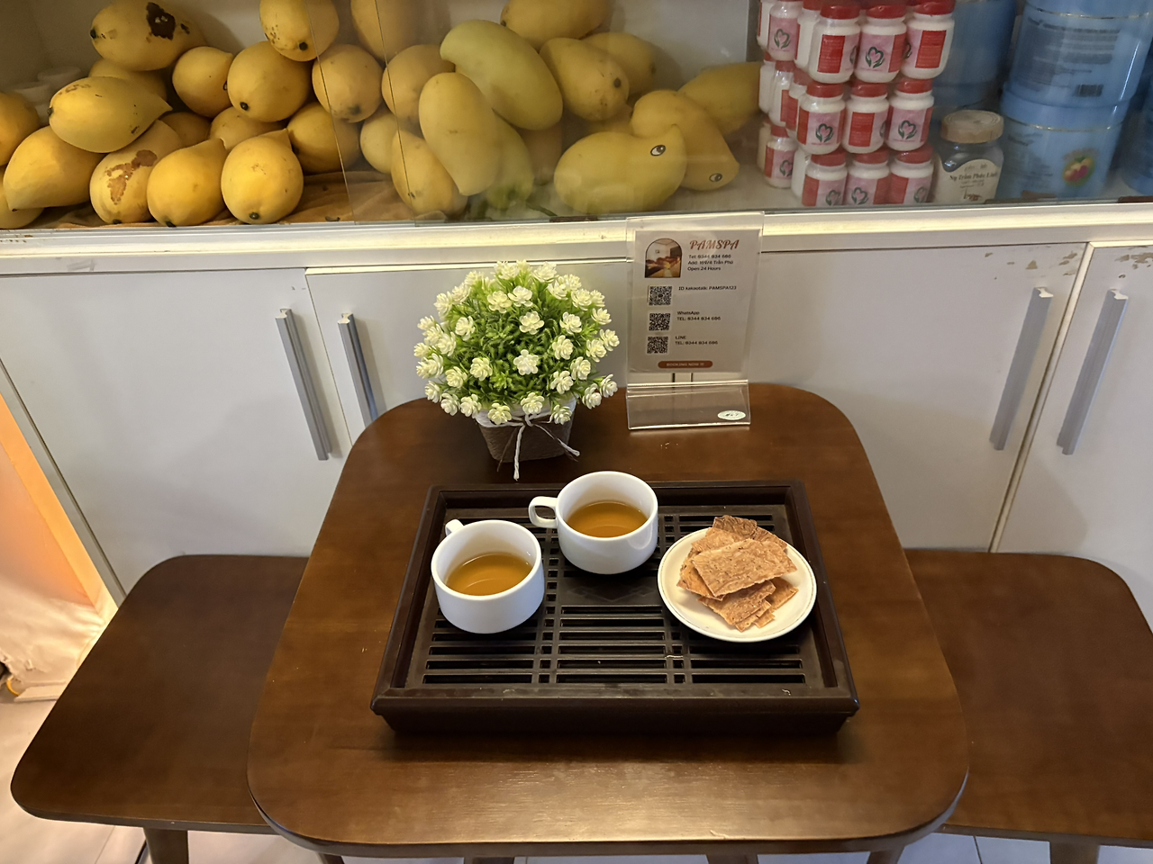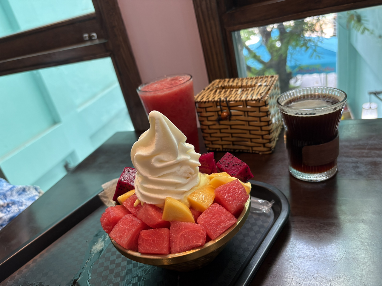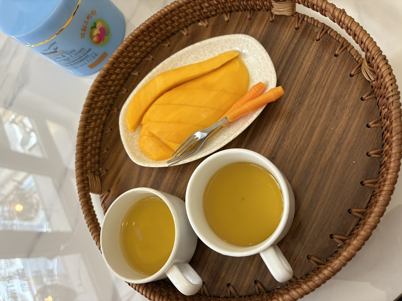 별: 티타임도 했다며? 차와 망고 한 접시. 그건 디저트가 아니라 완벽한 쉼표네.