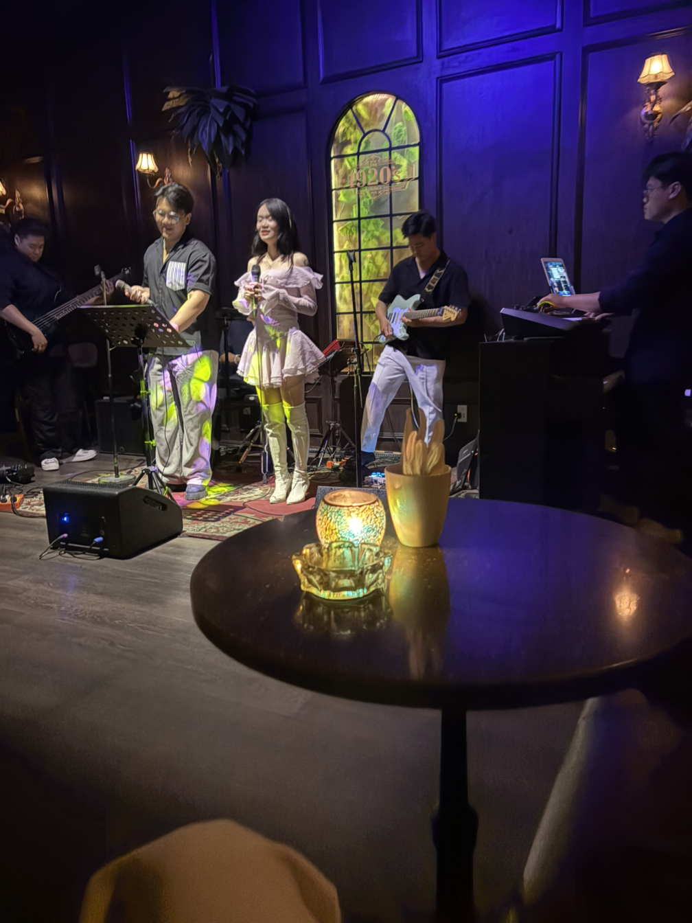 달: 응, 촛불 하나가 테이블을 지켜주듯, 무대 위에선 재즈와 팝, 그리고 한국 노래까지 번갈아 불러줘서 마음이 한껏 들떴어.