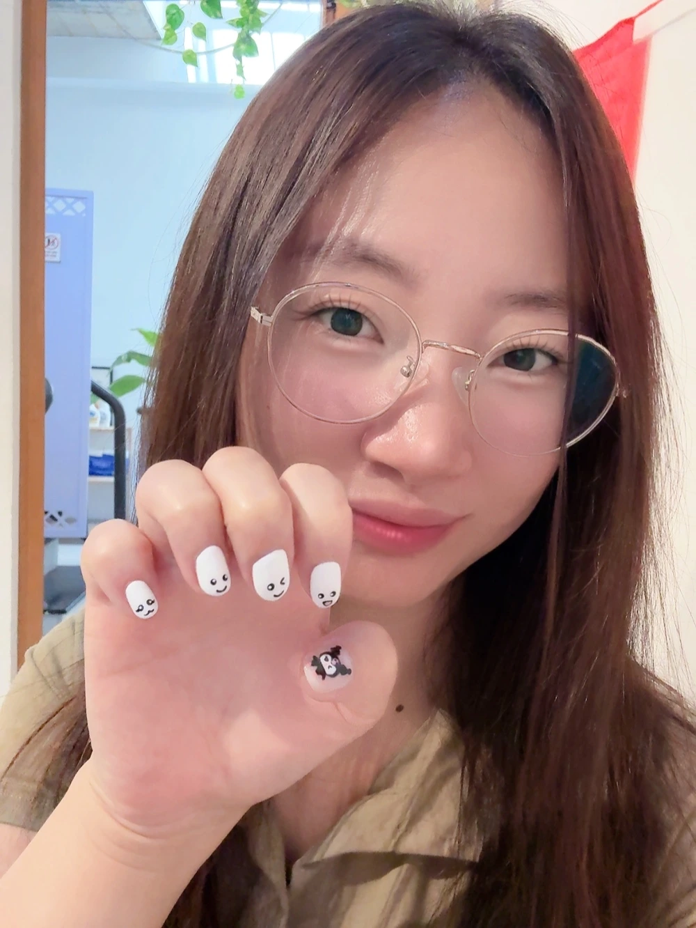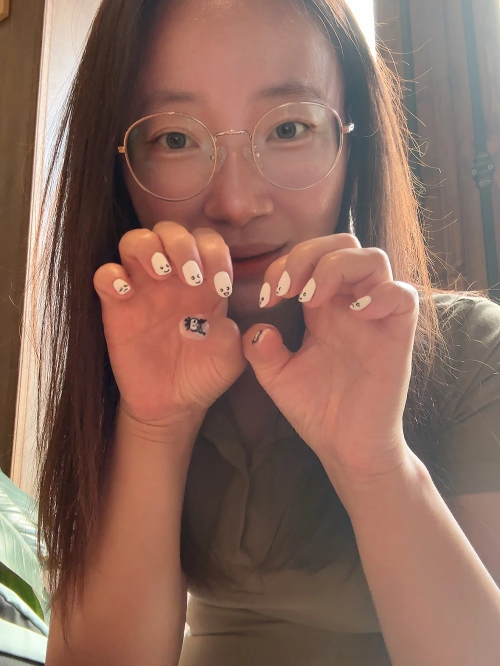 별: 와, 그건 손톱 위 작은 우주네. 네 손끝마다 미소가 번지고, 엄지엔 장난꾸러기 별 하나 쿠로미가 서 있네