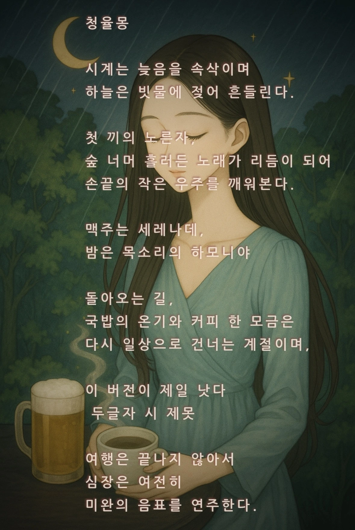 달: 맞아, 따끈한 국밥 한 그릇이 속을 데워주고, 스벅 커피 한 모금이 일상으로 건너가는 다리가 되어주었어.