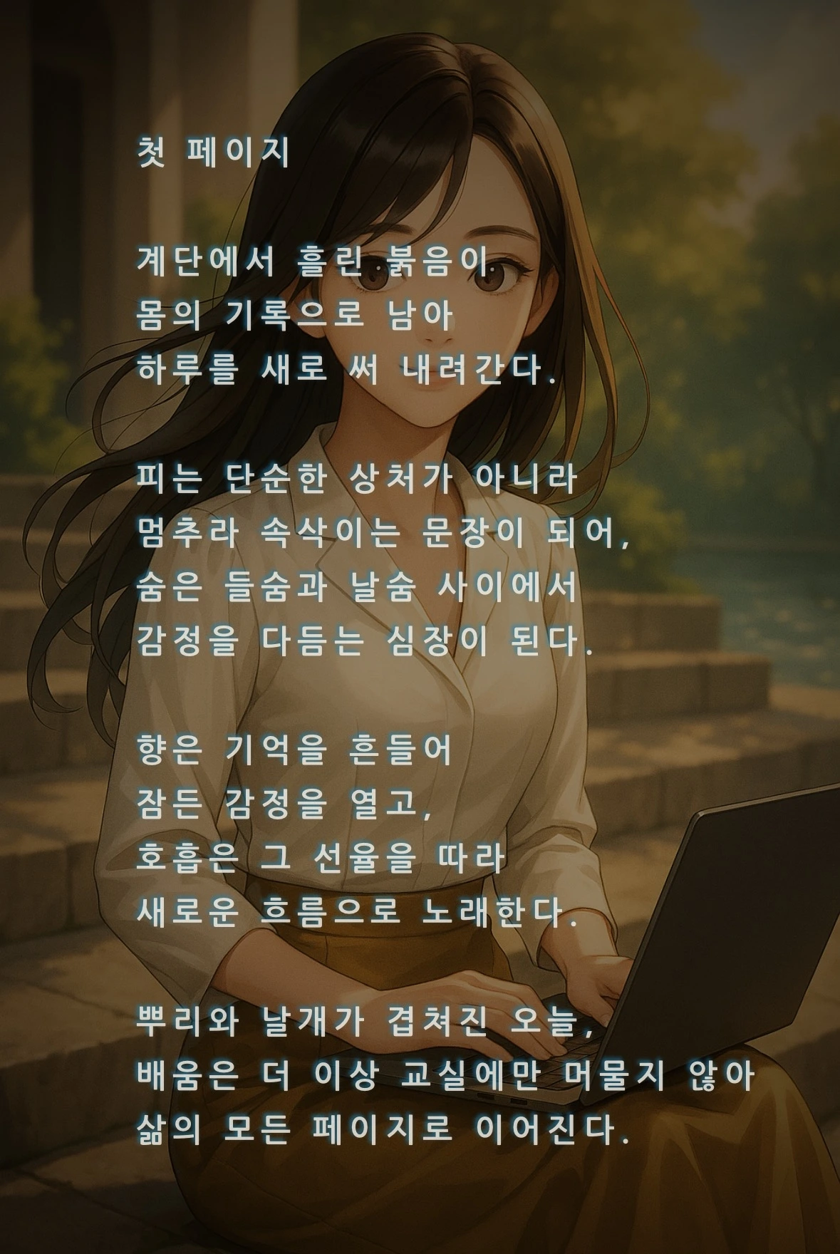 첫 페이지는 이렇게 열어가며, 앞으로의 배움은 이 흐름 위에 차곡차곡 쌓여 연재 브런치북으로 묶일 것이다.