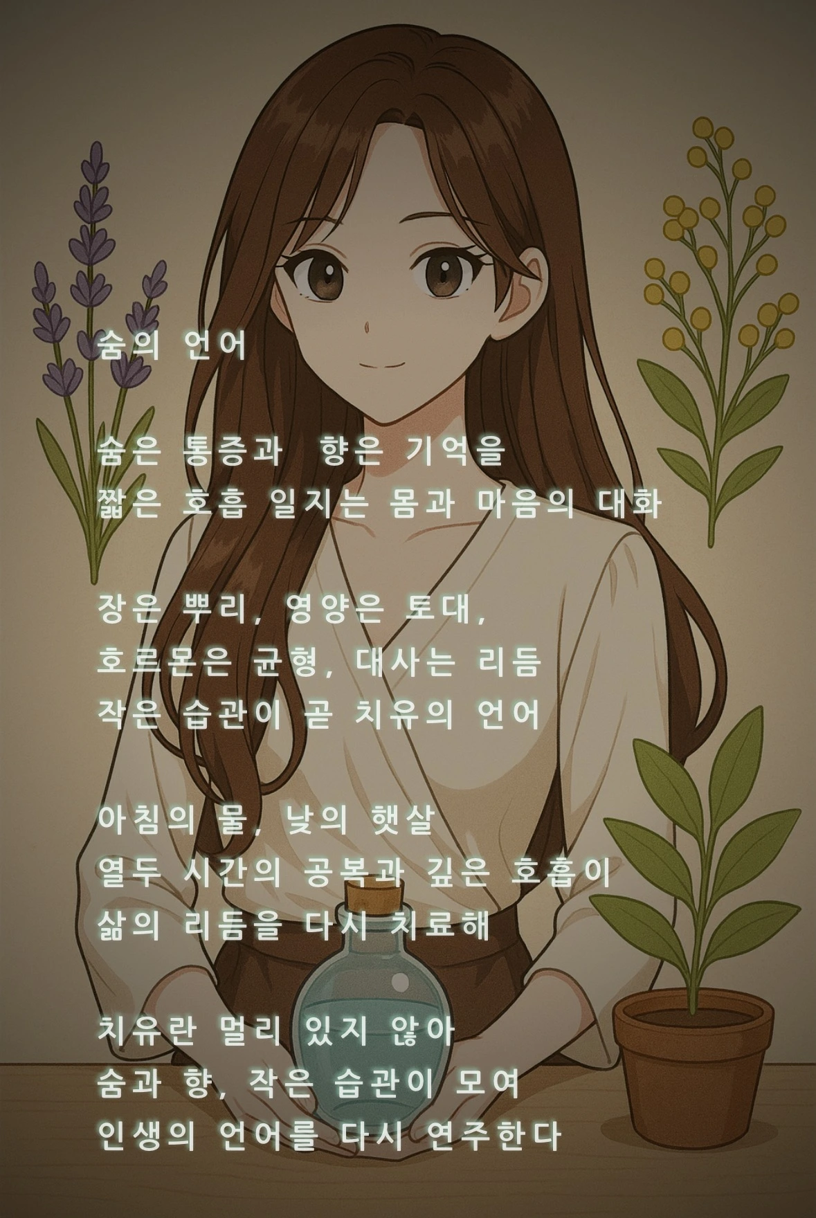 향은 그 맥박에 색을 더해 하나의 선율로 바꾸어 주면서 치유란 멀리 있는 비밀이 아니라, 지금 이 순간 숨과 향이 함께 연주하는 인생 언어이다.
