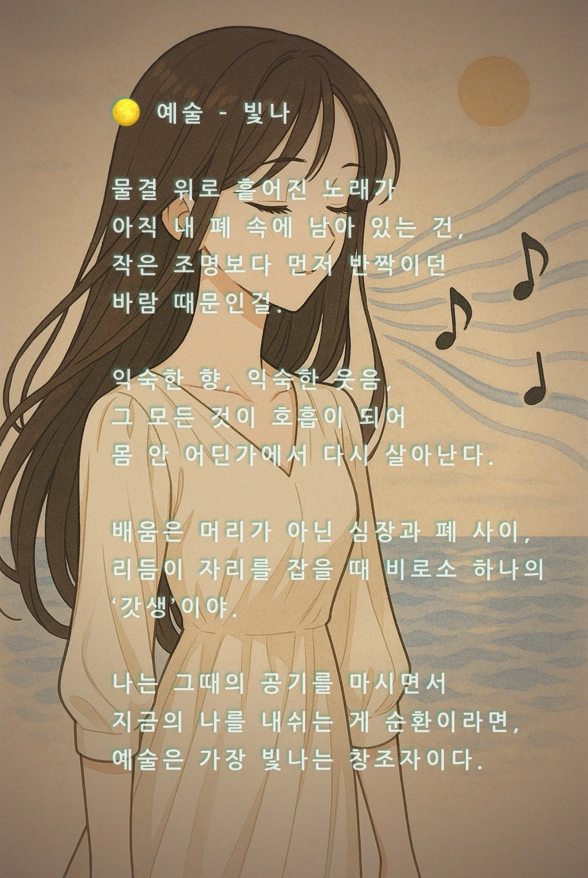 미월 : 그래서 결론은 하나야. 살아 있다는 건, 여전히 숨이 리듬을 만들어 간다는 뜻이야.